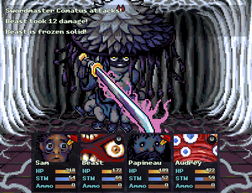 : Comatus has 3,000 HP. All of his attacks have a chance to freeze and cause bleed. If you have the 8-Ball, USE IT.
