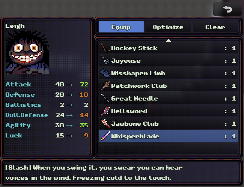 : It’s also currently bugged. A few weapons (like the jawbone club we got off Baby Teeth) are meant to inflict status effects but instead provide protection against them. The Whisperblade is supposed to do both bleed and freeze, but only inflicts freeze while providing bleed resist.