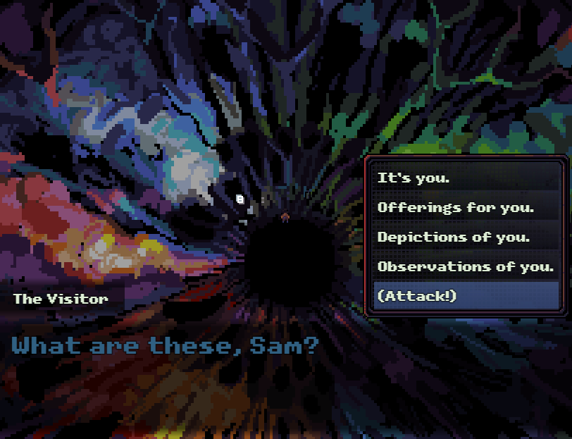 : We could talk to the Visitor - that’s how the original game ends. But you know what? We can kill it.