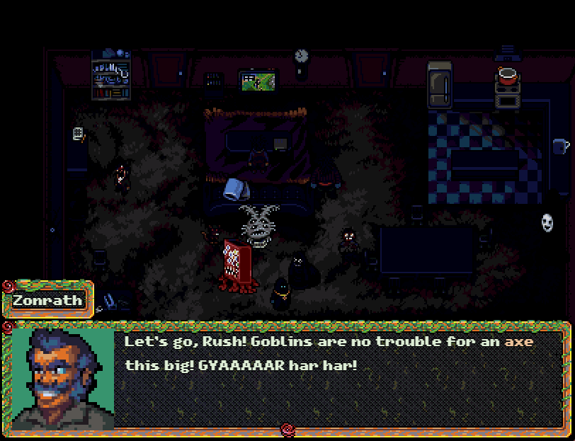 : If I was writing this, I would have had a scene post-Fungal Lair where if you talk to Pierre after Sam is spored at least once, it does something to his brain where he can actually recover from his coulrophobia.