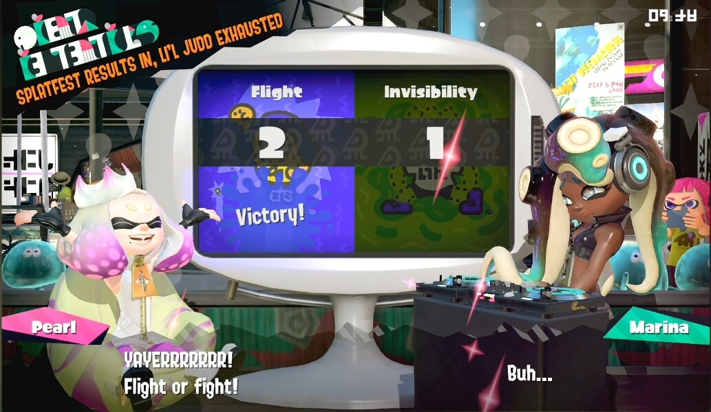 This Splatfest was close, but while Invisibility barley won in popularity, the match and team counts were in favor of team Flight.