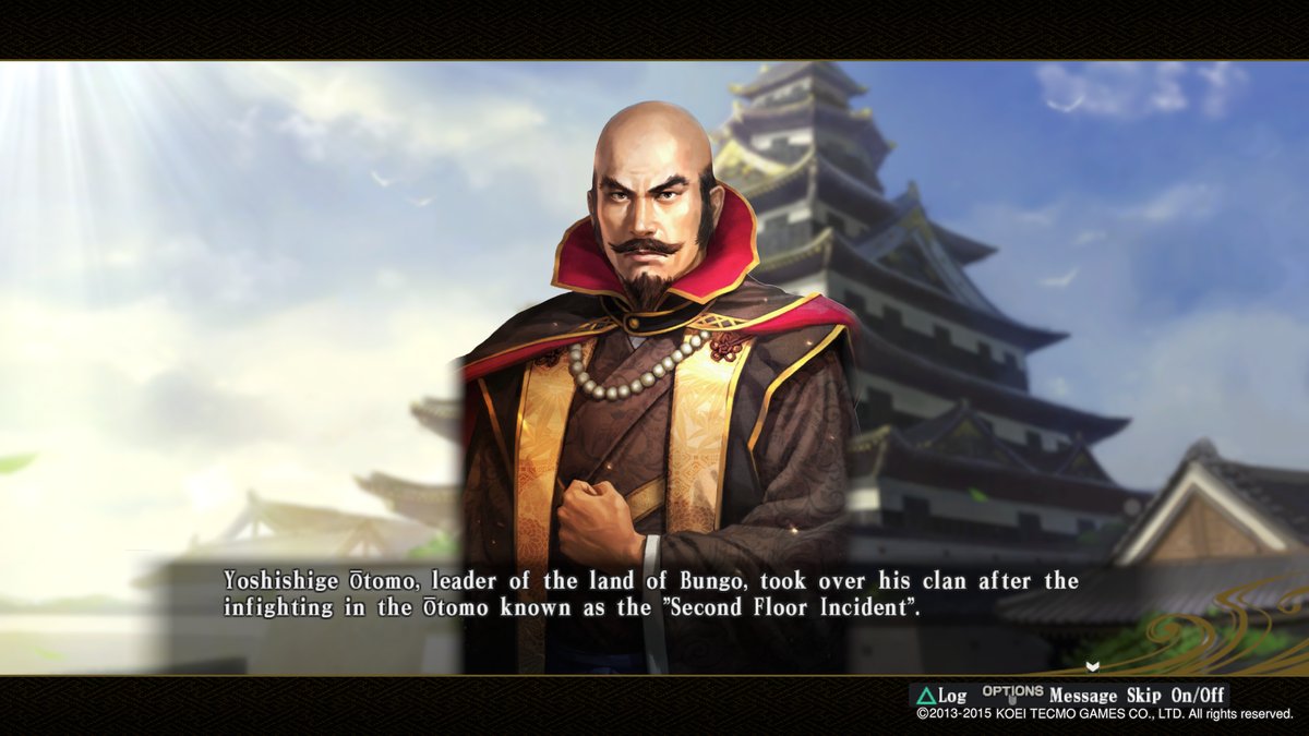 Yoshishige Otomo, leader of the land of Bungo, took over his clan after the infighting in the Otomo known as the “Second Floor Incident”. The incident has lost Yoshishige his father, his mother in law, and his half brother.