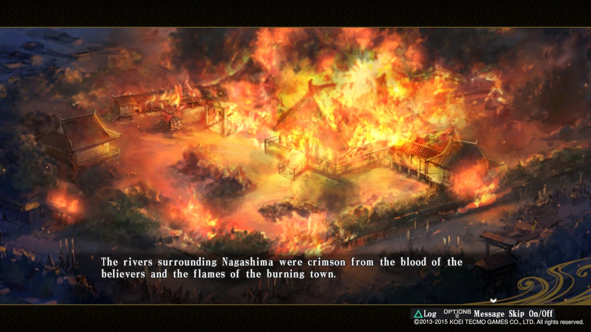 The rivers surrounding Nagashima were crimson from the blood of the believers and the flames of the burning town. The other daimyo quivered at this unprecedented act of brutality, regarding Nobunaga with more caution than they had before.