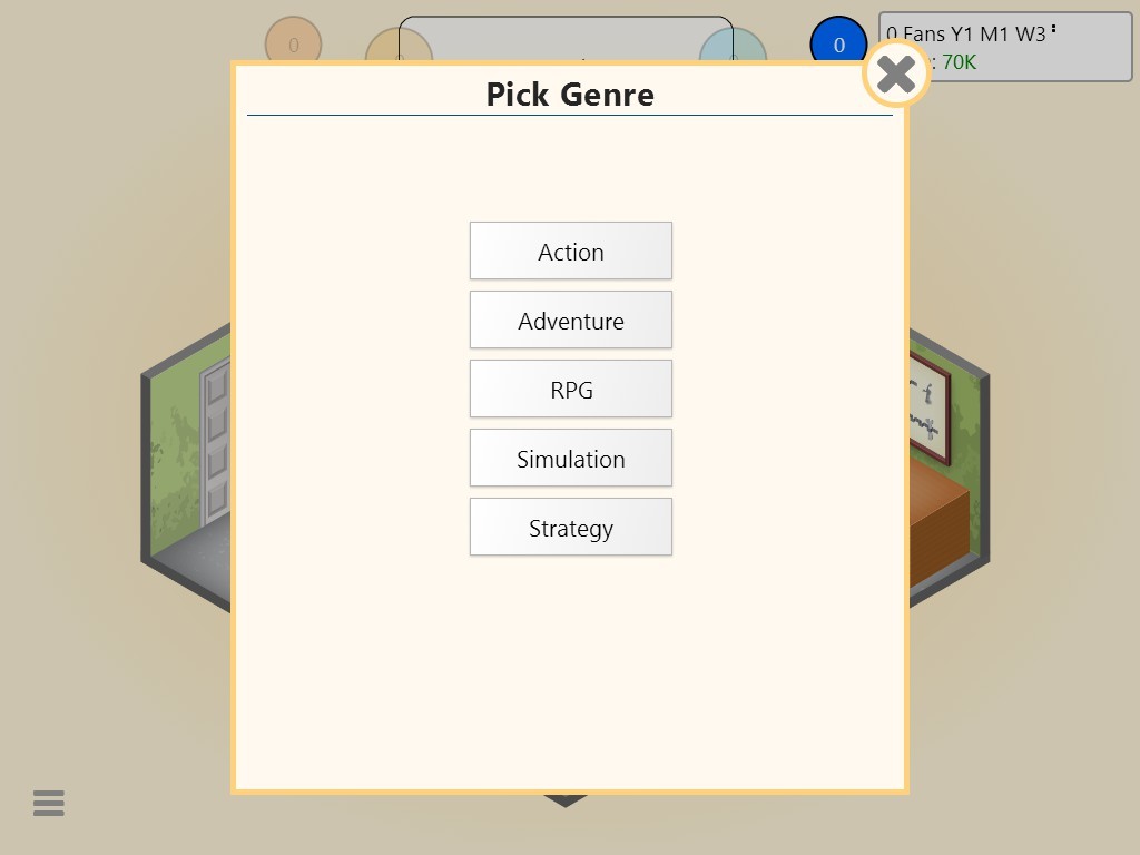 We have 5 genres to choose from: Action, Adventure, RPG, Simulation, and Strategy