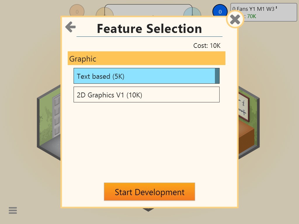 All that’s on it for now is the Graphic options: Text based, costing 5K, and 2D Graphics V1, costing 10K.