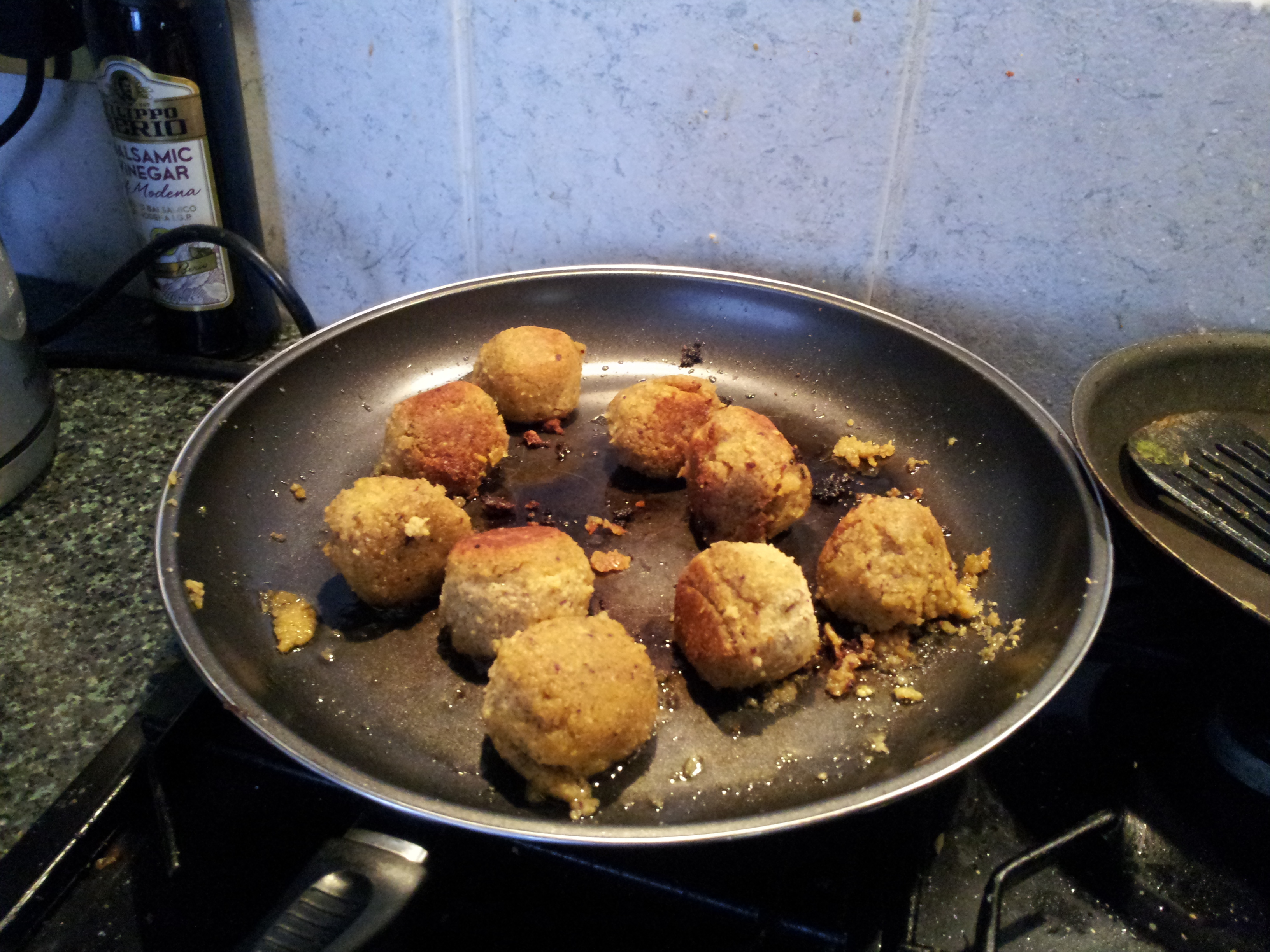 Turned out much better than I expected, though they probably needed to be cooked for longer. Gonna stick 'em in a pitta with some yoghurt and cucumber tomorrow to see how they hold up.