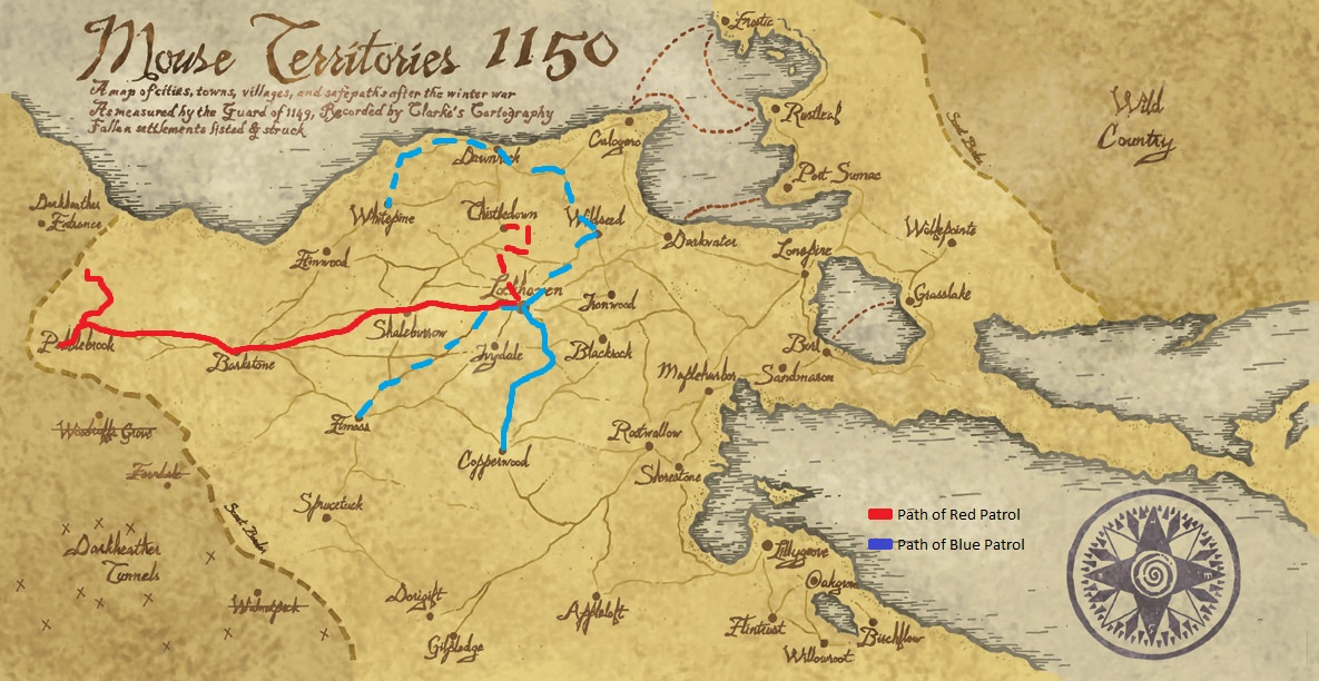 Happy Spring! It was so wonderful to winter in Lockhaven again. It does me a world of good to see all those old faces, and meeting your tenderpaw was a treat all its own. Now I know you always tell me not to believe the rumors I hear, so tell me the truth: is old Ivy active in the Territories again? She was ancient when I was green. I was lucky enough to go on missions with her a time or two. Every day it seems your mom has been talking me down one way or another from going back myself. These are dangerous times! I still have limbs to use and service to give. Sprucetuck officially closed its borders to all weasels over the winter, and you know what that means. If we’re on a precipice, I want to grab the rope with the rest of you.