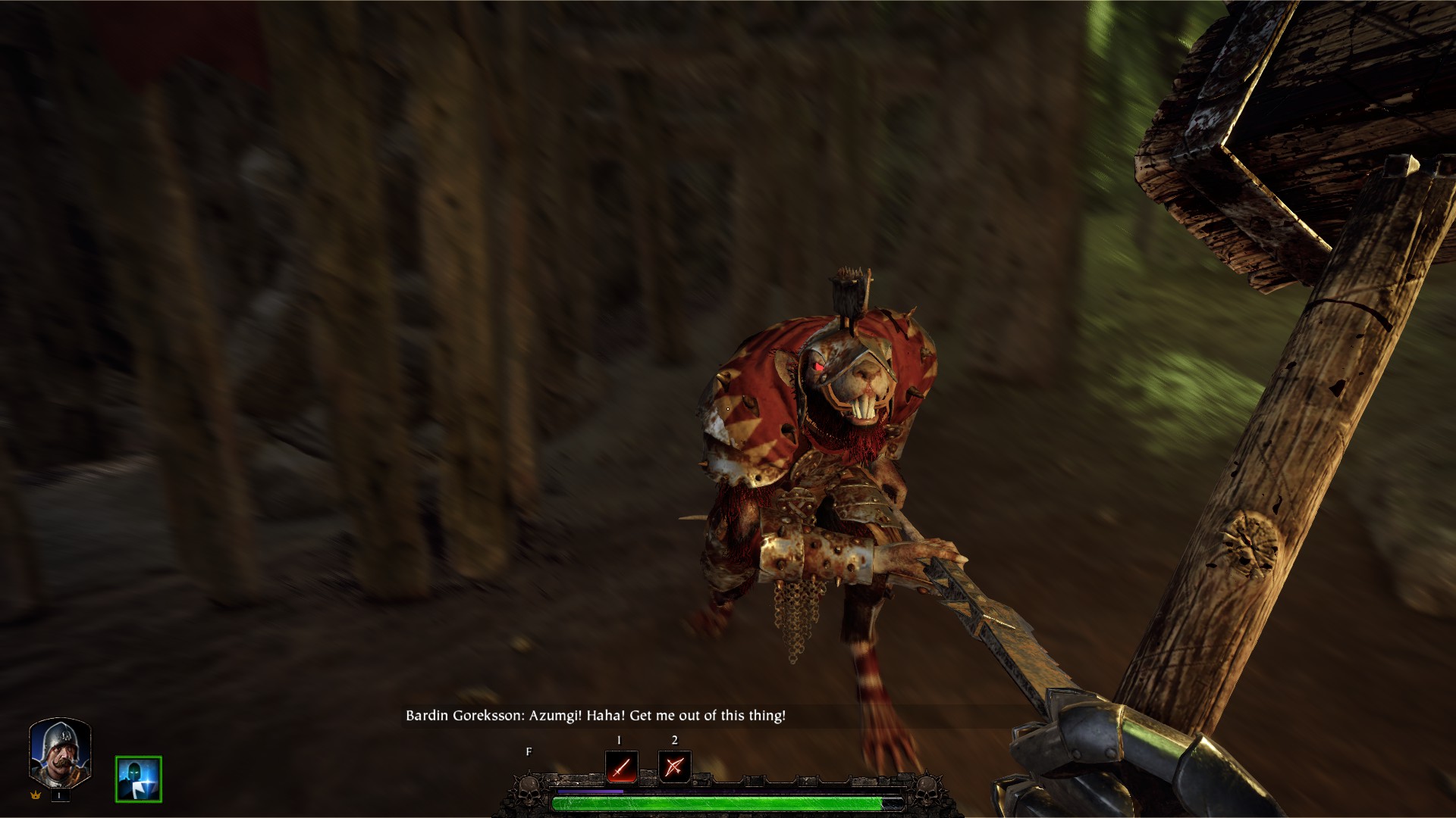 The average warrior of the Rotblood. These soldiers are quite wild and are stronger than their Skaven counterparts. Without any armor they still are not too hard to deal with but may take a few swings to kill.