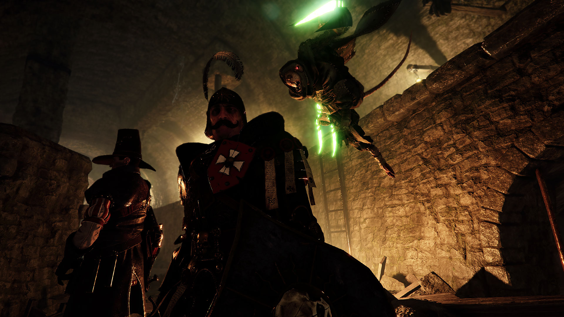 Donned in green robes, Plague Monks are berserking Skaven that dual wield weapons. At close range they’re extremely dangerous and do flurries that can hit many times or break through guard. It is best to push them then go for the kill.