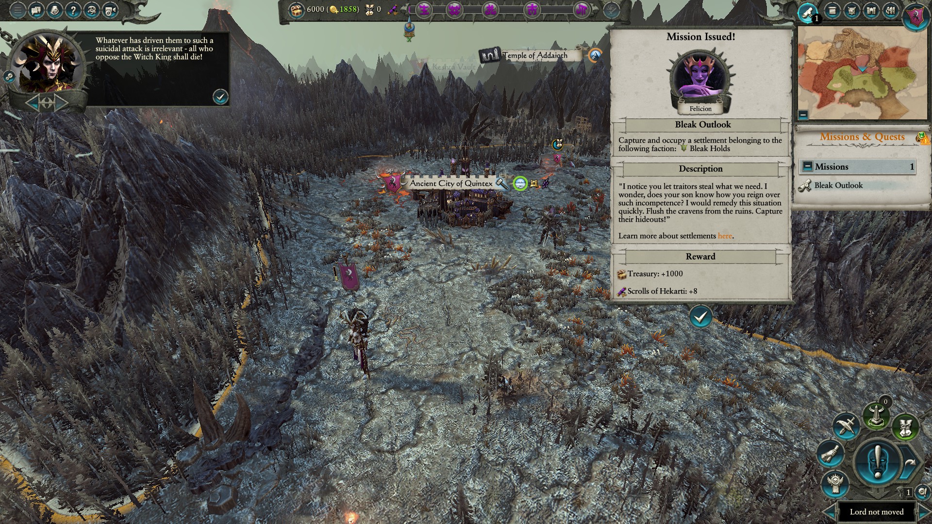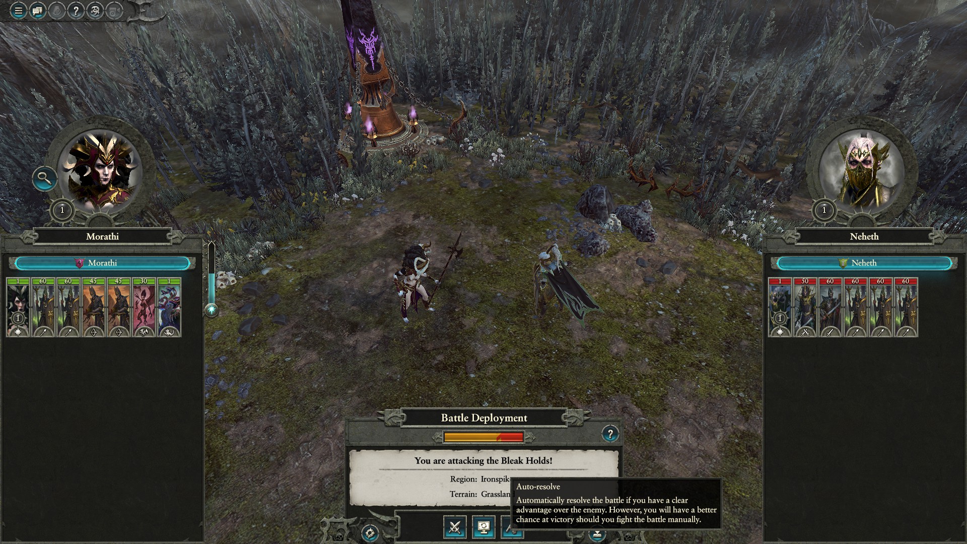 The Bleak Hold sits to the East and is Morathi’s current goal. But to get to it she’ll have to deal with surrounding threats, such as the territories taken by the Bleak Holds to the West and South, Ironspike and The Moon Shard.