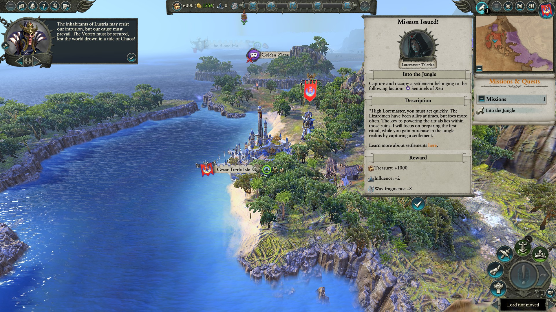 On the Western coast of Lustria are found the Great Turtle Isles. It is here that Teclis has begun his search for Waystone Fragments. Setting up a base at first seems easy until the local Lizardmen known as the Sentinels of Xeti prove to be a problem. Teclis needs to establish dominion over the area but the Lizardmen are highly territorial and protective of their lands.