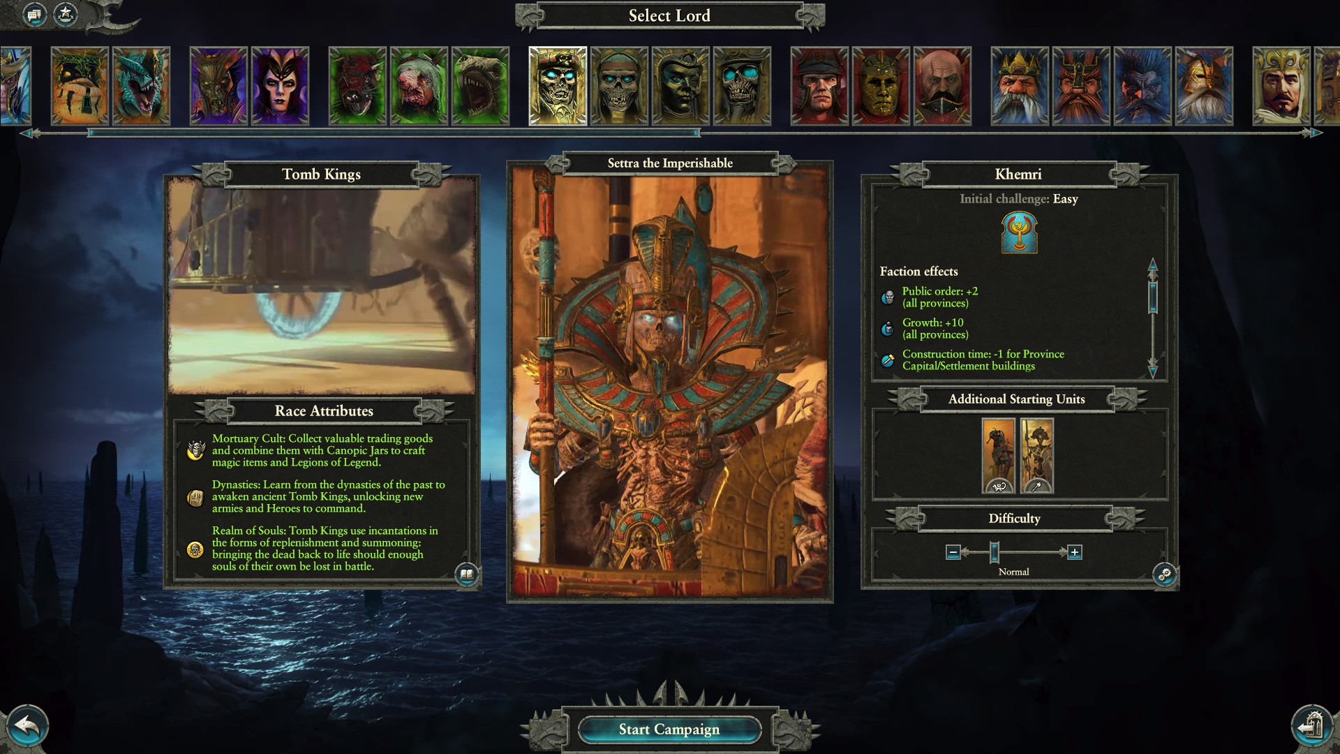 Welcome to the Mortal Empires campaign. This campaign rather than following the race to the Vortex instead focuses on domination, conquering as much of the world as possible. It is less time constrained, allowing for you to play the long game without fear of losing objectives. It also uses the Old World, the world map from Total War: Warhammer. In Mortal Empires both game maps are combined into one massive map with nearly every faction(Norsca is coming in May) available in both games appearing. This story is more related to the End Times and the invasion of Chaos.