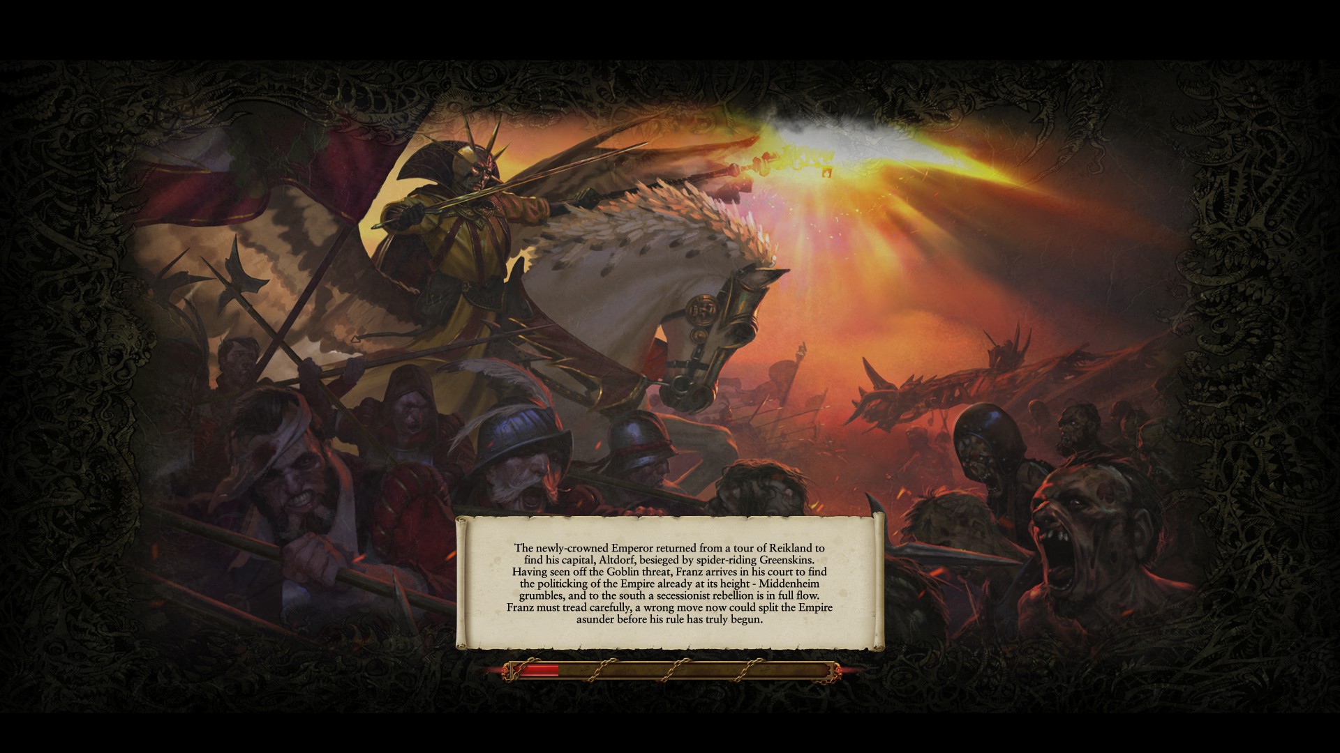The Empire is the legacy of the great Sigmar. Once what were divided human tribes were united by the great hero of humanity, Sigmar, the first Emperor. His time has now long passed, with Emperor Karl Franz now holding the position. An Emperor is elected by the Elector Counts, which have chosen Karl. Karl is the Prince of Altdorf of the Reikland. He needs to unite the Empire in these trying times and make it into the once great power it was.
