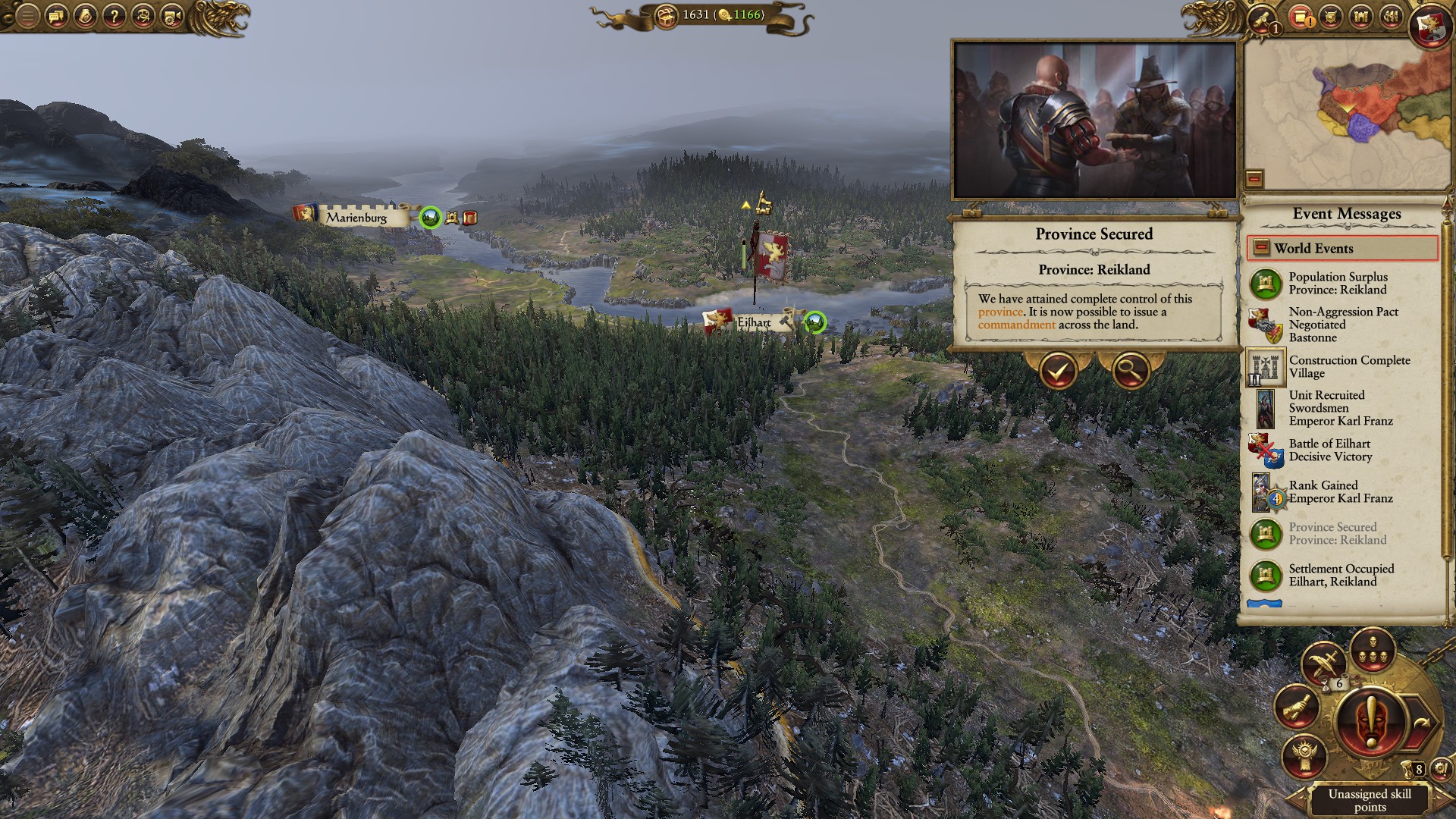 With Karl Franz leading the Empire of Man it was a walk in the park, after building up the necessary forces. Reikland is now ours. It is time to start looking elsewhere for new land to take up.