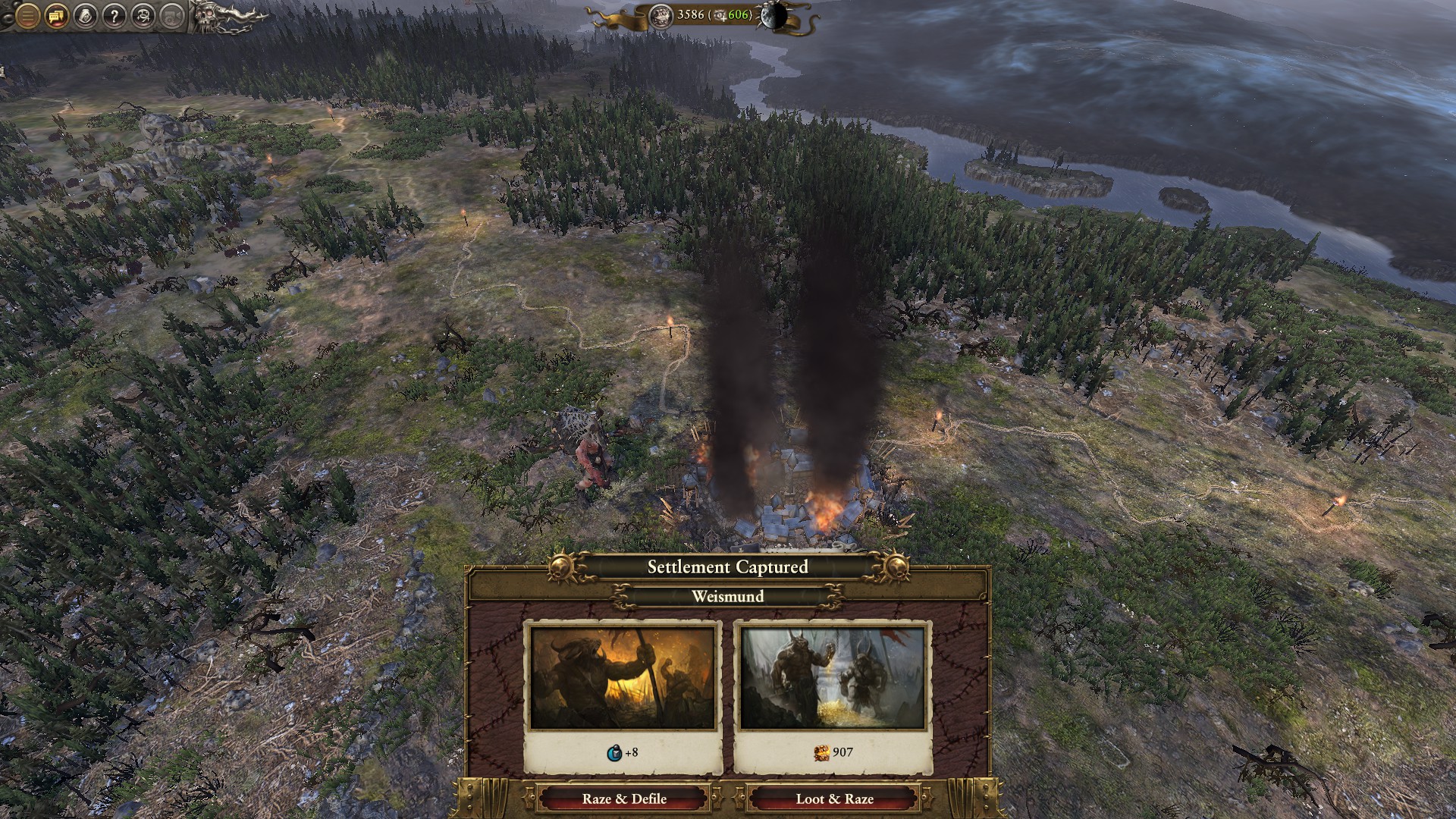 Since we cannot take settlements instead the Beastmen Raze them. Razing a settlement completely destroys it, spreads Chaos Corruption, and requires complete colonization to make it into a new un-upgraded settlement. When we Raze them we can focus on looting gold or gaining Growth.