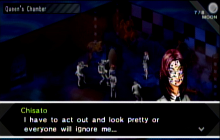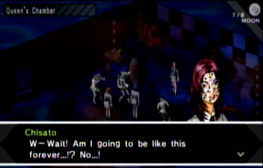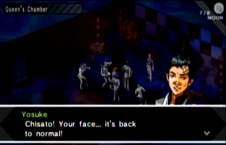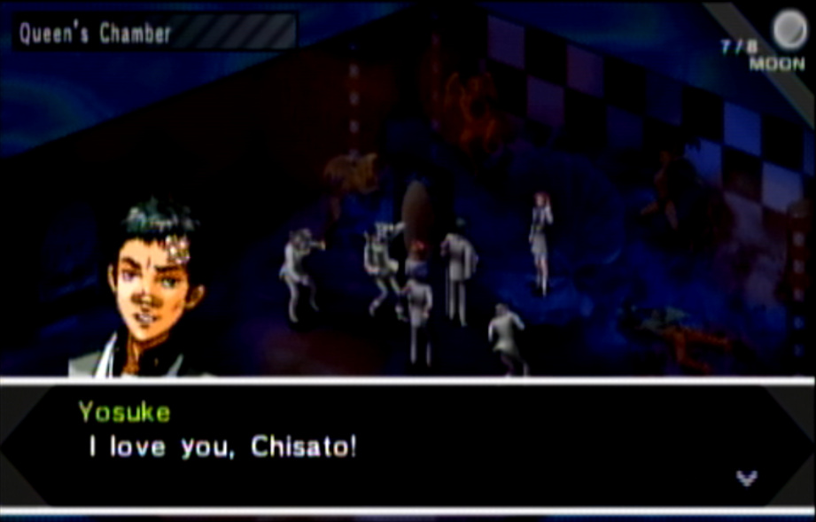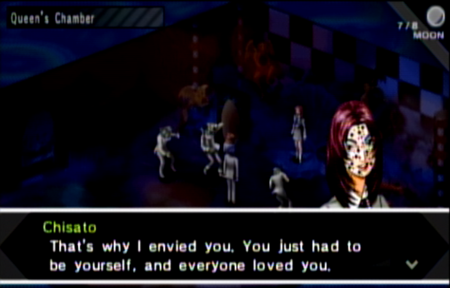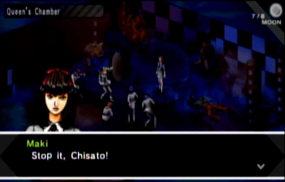 : “…Okay. So you’re the Queen. Isn’t it about time to put an end to this? Let’s go back together! Yosuke’s hurt! He needs you, Chisato…”