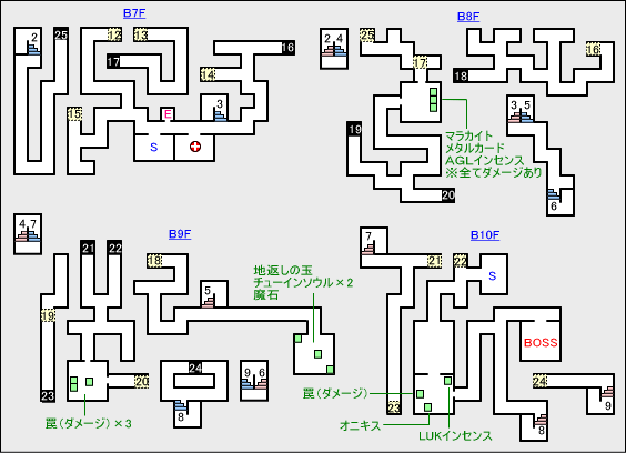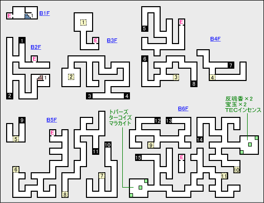 : We can go back to that door from earlier, and now we’re in Kama Palace. Kama Palace sucks. Kama Palace is SMT1 dungeon design at its worst. Let me just post the map, from the same Japanese site I found the SEBEC building map: