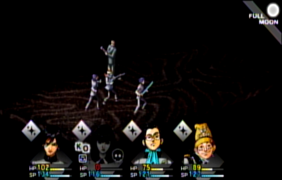 Weirdly, Persona 1 is the only Megami Tensei game with zombies that are immune to guns. They’re not immune in SMT 1 (though they do resist it by half) and they’re neutral against it in SMT 4 and SMT 4 Apocalypse. The reason for this is that rather than give every enemy unique resistances, Atlus did this thing where they gave all demons of the same type the same resistances. This is also largely true for the Personas, who share most of their resistances by arcana. This can and will be abused heavily when we get to the Snow Queen parts.