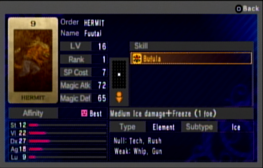 So, when you fuse a Persona in the Velvet Room, you’re given the option to give the Persona an item. This is mostly used for one specific purpose that we’ll see much later in the LP - you can find tablets that have specific spells on them (usually the high-end attack spells) and give them to a Persona to cause them to learn that spell. There is a way we could do this at the point we’re at in the game, but it would require hours of intentional grinding.