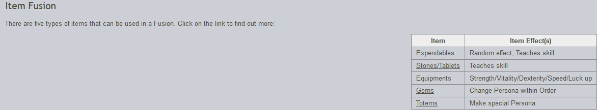 Giving a Persona a consumable item has a chance of teaching them a random skill from a list that they are capable of learning. There’s certain limitations to this - as an example, the Jack Frost we made couldn’t inherit any fire spells because he’s an ice-based Persona. Now, normally this wouldn’t be a big deal, except..