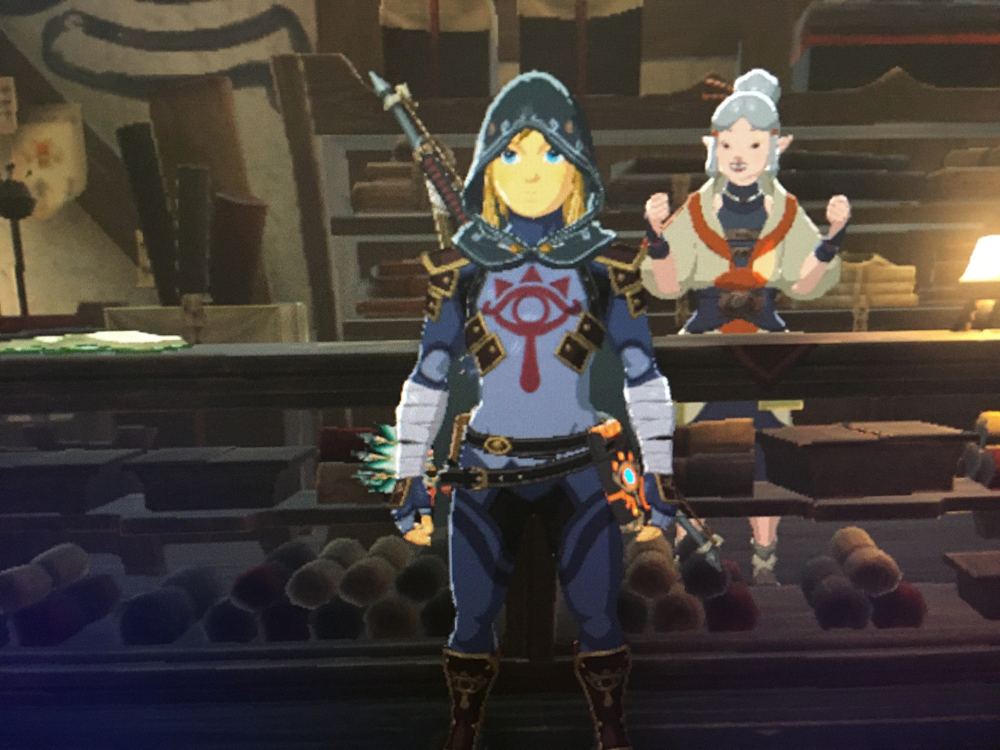 That hood was from Kakariko’s clothes shop, fairly cheap if I recall too. It’s pretty rad, but there’s a Sheikah skarf in there that I want even more but costs a stupid amount of rupees…