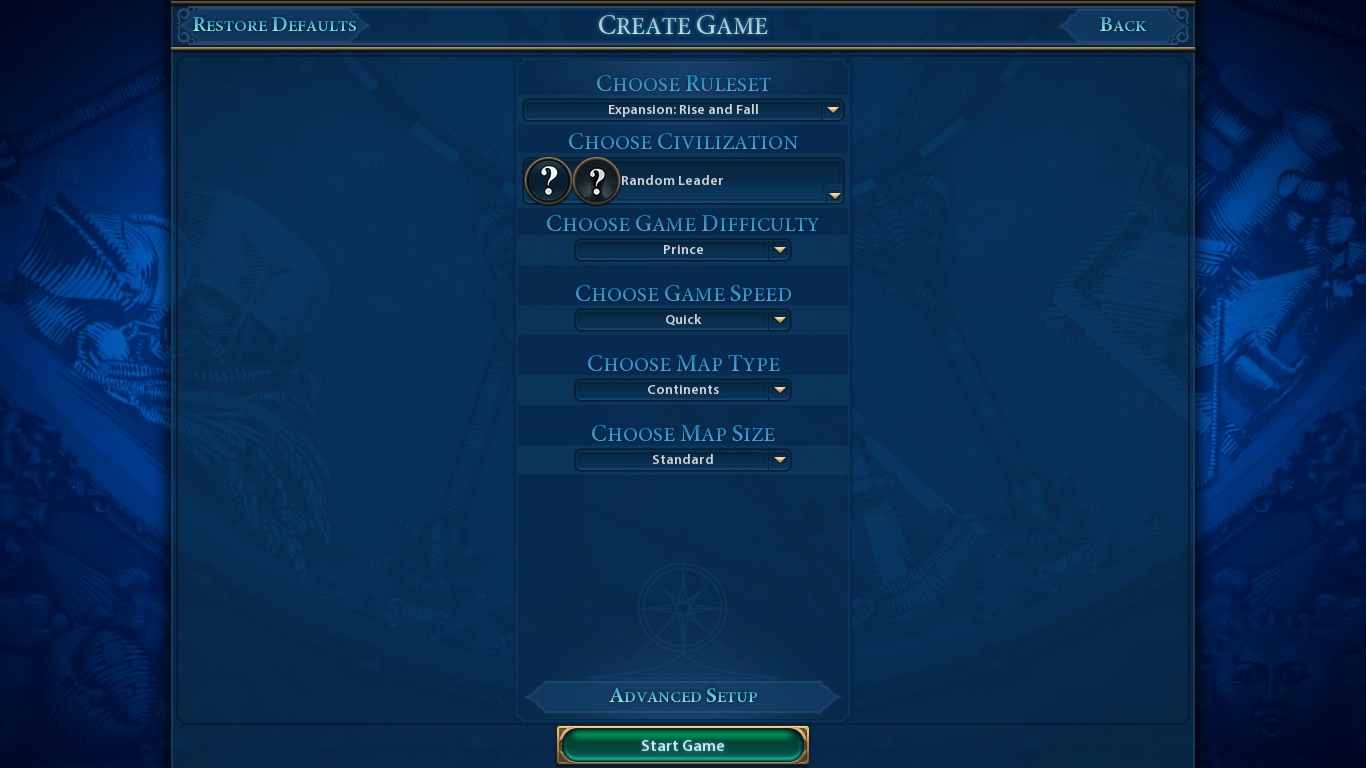 The main objective of these series is to win at least one game by each victory condition (except score cause score is dumb), in no particular order. I’ll begin on Prince difficulty, bumping it up by one level for each win (I’ll probably put a limit to how many tries I’ll do before tuning it down again. Remember: noob).