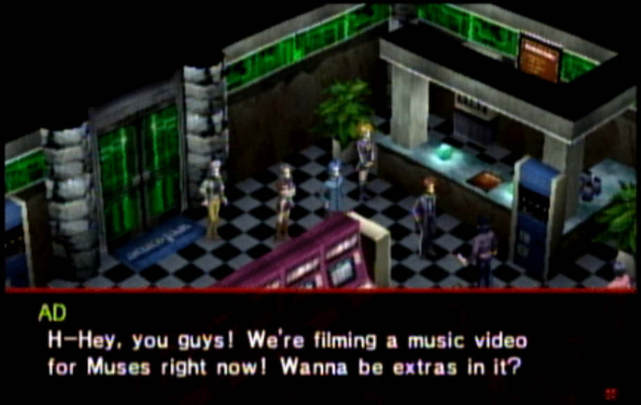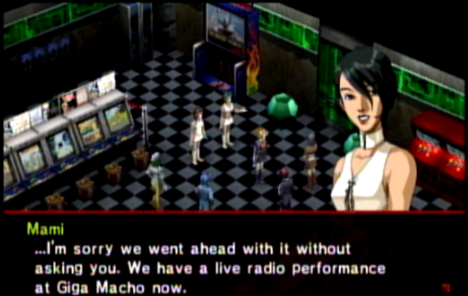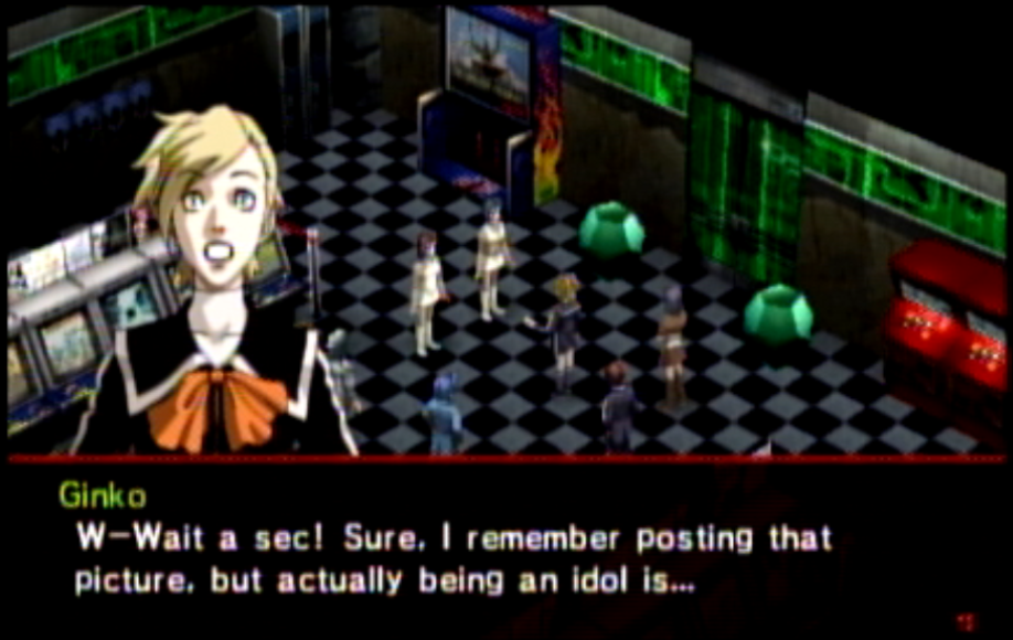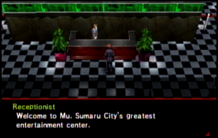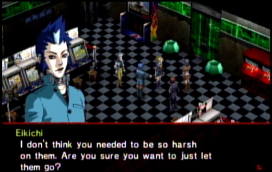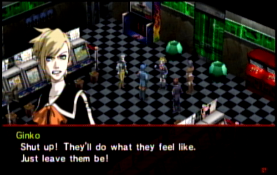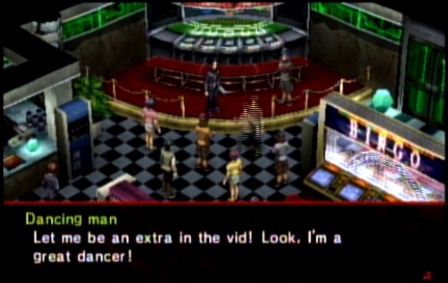 : I’ll probably spread the rumor about it eventually just to show it off, but the casino in Mu is very different from Judgement 1999 in Persona 1. The machines are numbered, and you can talk to people on the street to find out which machines are the easiest to win on. The only problem is that your win chance depends on Tatsuya’s luck stat, which is pretty low because we’re pumping Dexterity for fusion spell damage.