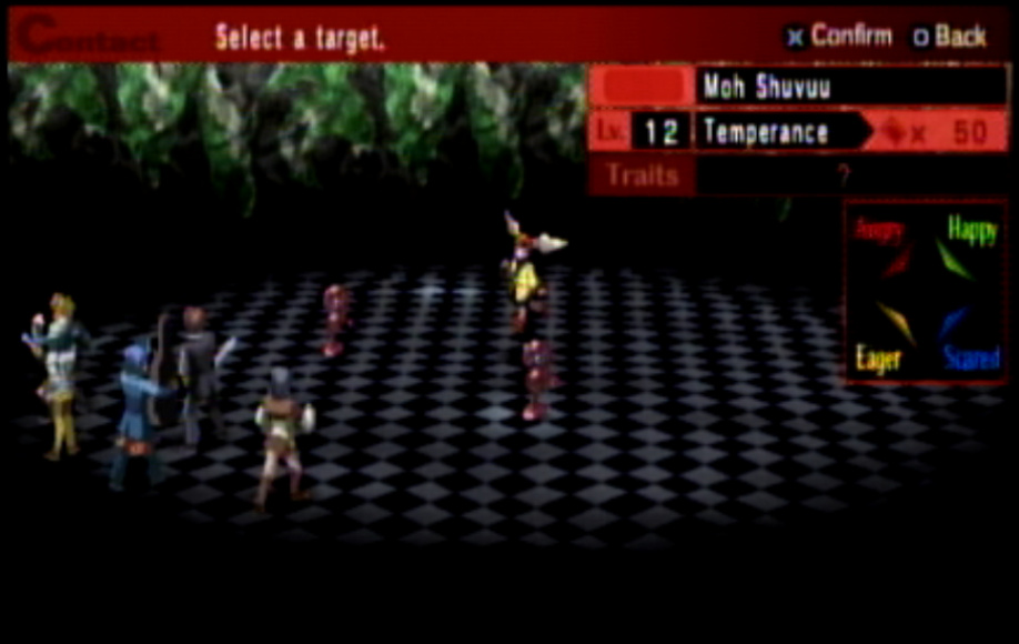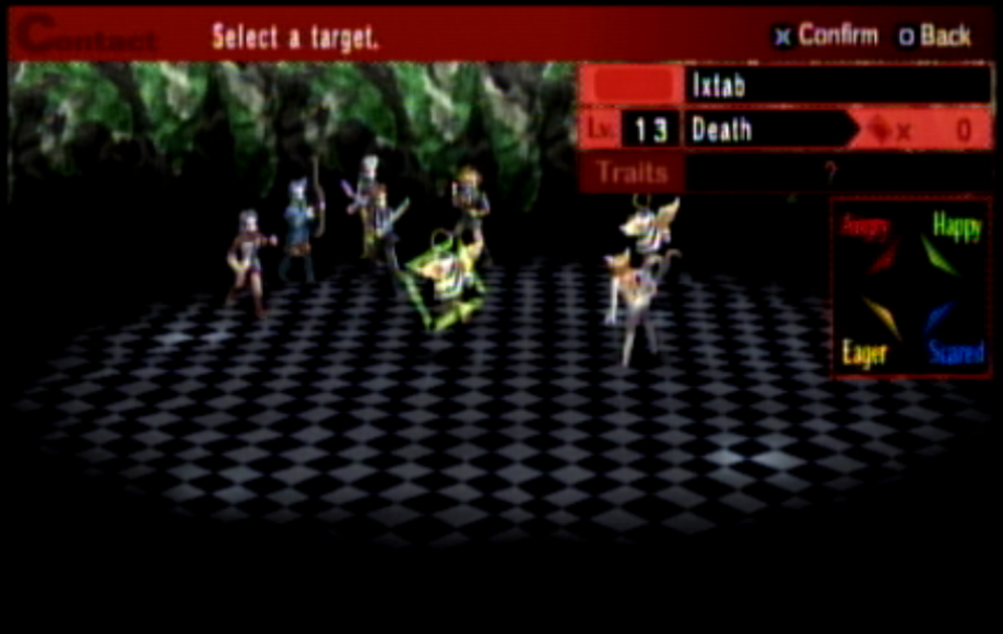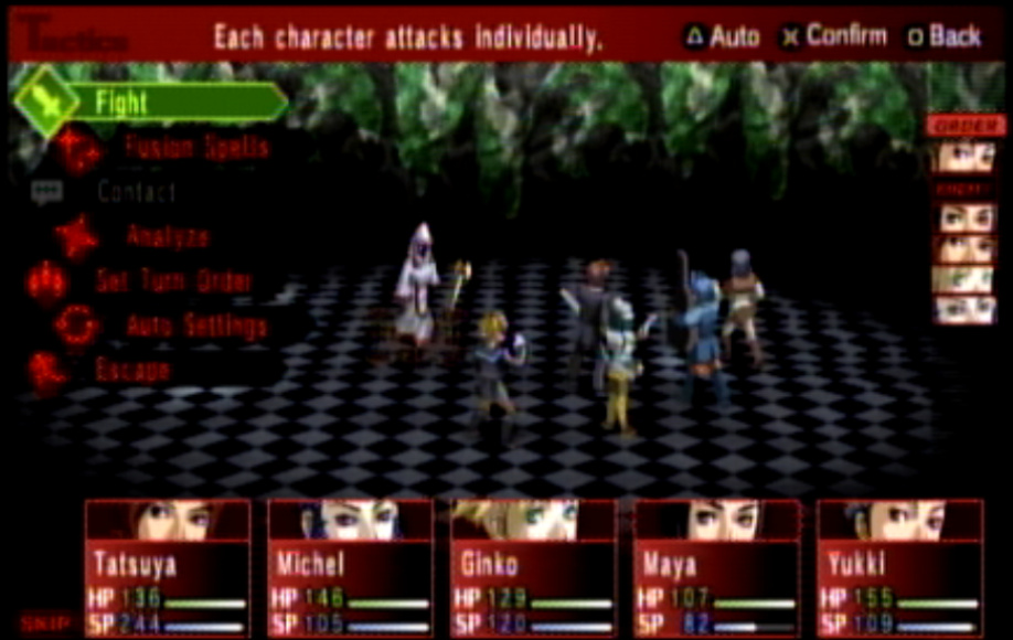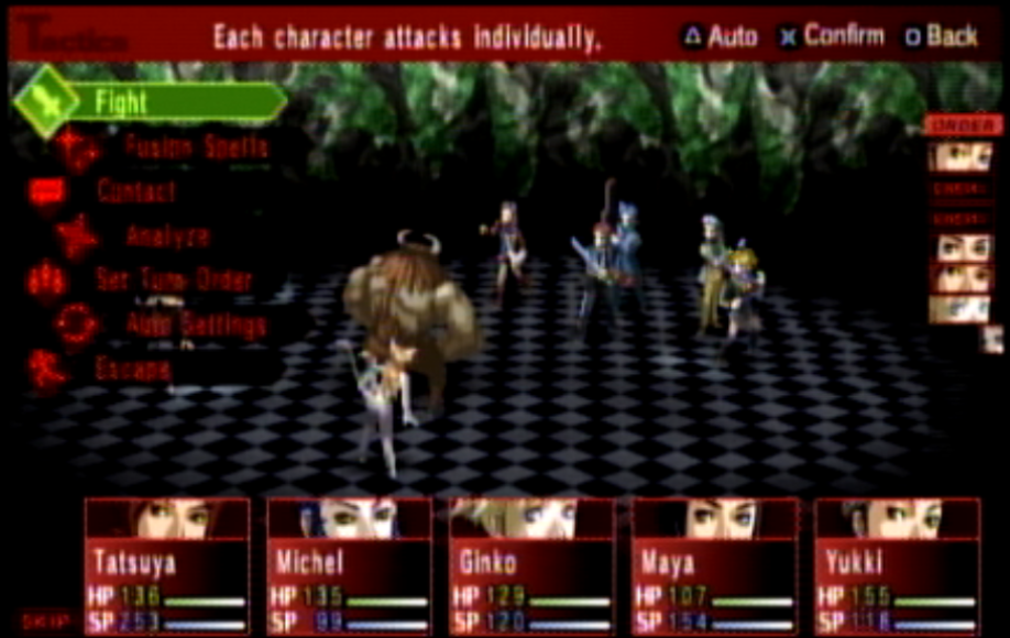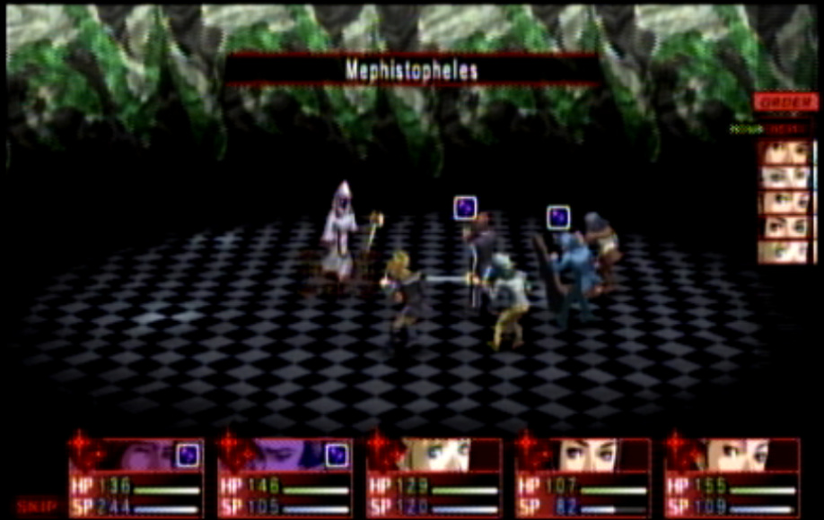 : He opens with Mephistopheles, an attack that causes random status effects to each party member. If he had managed to hit Tatsuya and Eikichi with sleep or charm, this might’ve been a bad time.