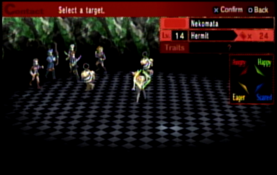 : Surprisingly, our first random encounter is with actual demons. This is kind of a rarity in Mu. Nekomata is the one demon you want to negotiate with here: she’s easy to negotiate with and gives 15 free cards every time you do so once you have a pact.