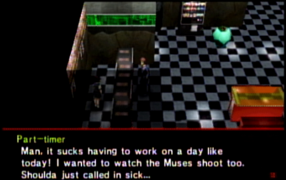 : There’s a cut between these two scenes, so I’m not really omitting anything. You can’t see the animation, but Tatsuya is in fact playing DDR in the background. I forgot how big DDR was in 1998.