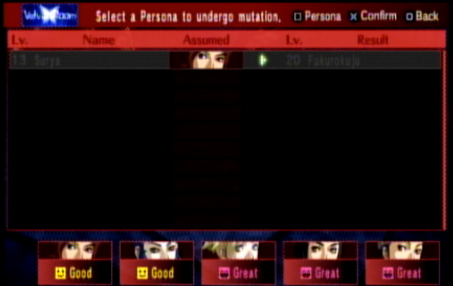 : We can see here that Surya can mutate into Fukurokuju, who is a minor arcana Persona. The problem is that unlike regular fusion - where we can fuse and equip Personas up to five levels higher than the corresponding character - we can’t do that with a mutation. By the time we reach level 20, we will have access to Personas way better than Fukurokuju.