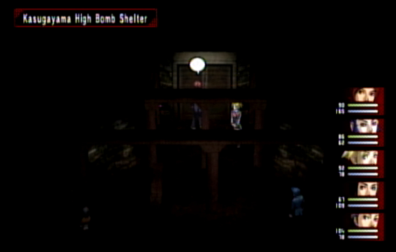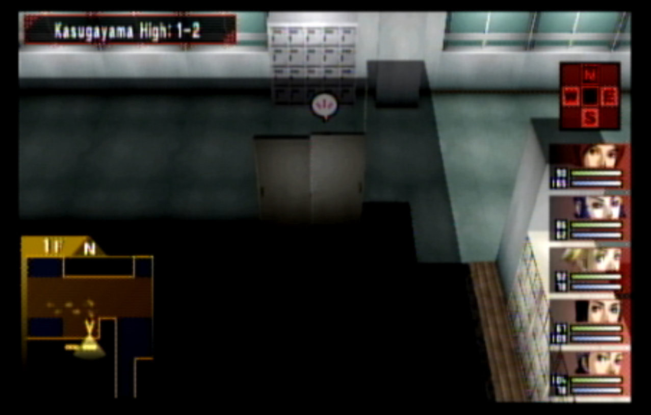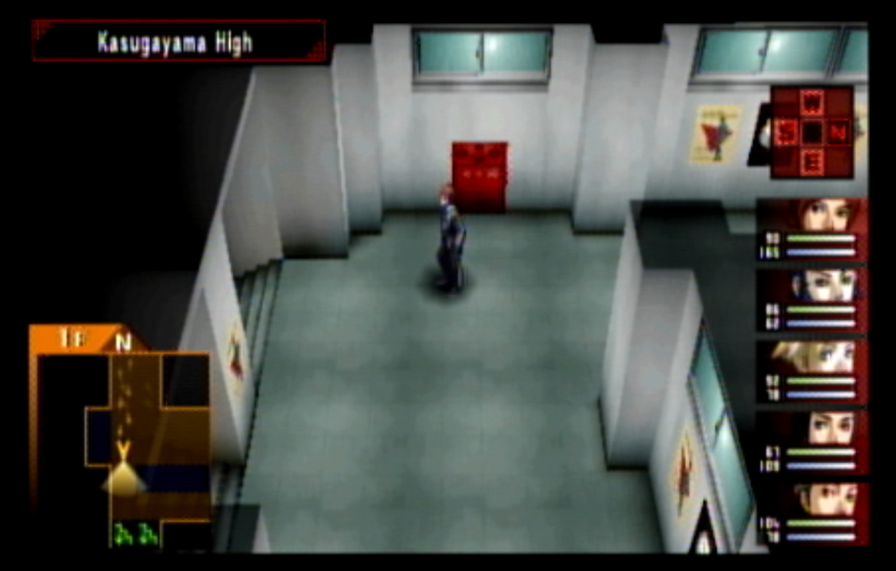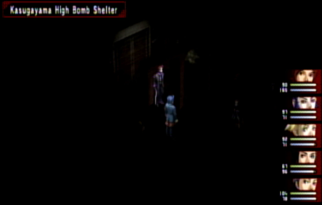 : We’re on our way to Kasugayama High, also known as Cuss High. : Cuss High is largely the same inside as Seven Sisters, with one exception that we’ll see a bit later. : Right away, we encounter two new enemies: Empusa and Agathion. The guide says that you should be making pacts with the demons around here, and it was here I finally found out what pacts do. : Unfortunately, the developers caught onto the whole “party member catchup” thing from Persona 1 and got rid of it. Eikichi is only level 6, which makes us basically unable to make a pact with anything. : So anyway, here’s what making a pact does, apart from being a bad game mechanic. When you make a pact with a demon, it doubles the number of tarot cards the demon gives on a successful negotiation. It also causes the demon to give you Free Cards. Why is this important? : The answer is that there are certain arcanas that demons do not drop cards for. To get Personas of those arcanas (Emperor is one) you need to use Free Cards. The sole exception are Fool Personas, which were a pain to get in P1 and are even more of a pain to get in P2. : Apep here is one demon the guide recommends making a pact with for Strength cards. Unfortunately, we need Eikichi to do that. : Even though Eikichi has told us where to go, we don’t want to go there just yet. Most of the rooms in Cuss High are blocked off, but 1-2 isn’t. : This gets Tatsuya another pair negotiation technique with Eikichi. I think the cutoff point for this is actually a bit after where we are. : This student gives us a hint about where we’re going next. It seems Cuss High has a bomb shelter built underneath it. I looked it up, and this actually wasn’t unheard of in the US: a bunch of schools had bomb shelters built underneath them in the 1960s, during the height of the Cold War. : Interestingly, a lot of these bomb shelters were built by civilians and to no one’s surprise a lot of them were both poorly planned and probably not all that effective against a nuclear bomb. One article I saw had a piece about a school with a population of 1300 students in the 60s. The municipality wanted to make it a fallout shelter.. that could hold a total of 340 people. How did they plan who’d get in and who wouldn’t? They uh.. didn’t. : Most of these shelters were meant to be decommissioned after the Cold War ended, but in a lot of cases that never happened and they were simply forgotten because there was no centralized recordkeeping system indicating where they all even were. There was even one under a high school in my home state of Connecticut, found in the early 90s. : Japan apparently has the same problem, only theirs are even more of a problem. For one, they’re much older (dating back to World War II) and also tend to come with the problem of unexploded WWII-era bombs. : If you walk by the rooms, you can see that some of them are decorated for the festival. Unfortunately, we can’t go into any of them. : The encounter rate is absurdly high, and we run into Puck. Puck was in Club Zodiac, but I don’t think I ever saw him. The guide recommends making a pact with him to get Lovers cards, and I did but it broke before I could get anything out of it. : You know what I’m not already tired of? Running around a building chasing after someone. Not like we’ve done this twice already. : Now we get to go all the way back to the stairs and climb back up to the third floor. : I’m pretty sure that by the time I got here, I had already put in more time than I did in Thanatos Tower in P1 because of how slow everything is. : 2-4 is just down the stairs from 3-1, so it’s not much of a walk. : Now we get to go all the way to the bomb shelter. I took a break and went to see what I could fuse at the Velvet Room. Unfortunately, everything there was either no good or would break the ability to use Mega Blaze. I could’ve replaced the Pixie we made with a Harpy, but there wasn’t much of a point. : The stairs to the basement are right near the gym on the west side of the school. : It’s kind of strange to me that the school has such a small basement. I know the one in Connecticut was only part of the basement and not the entire thing.