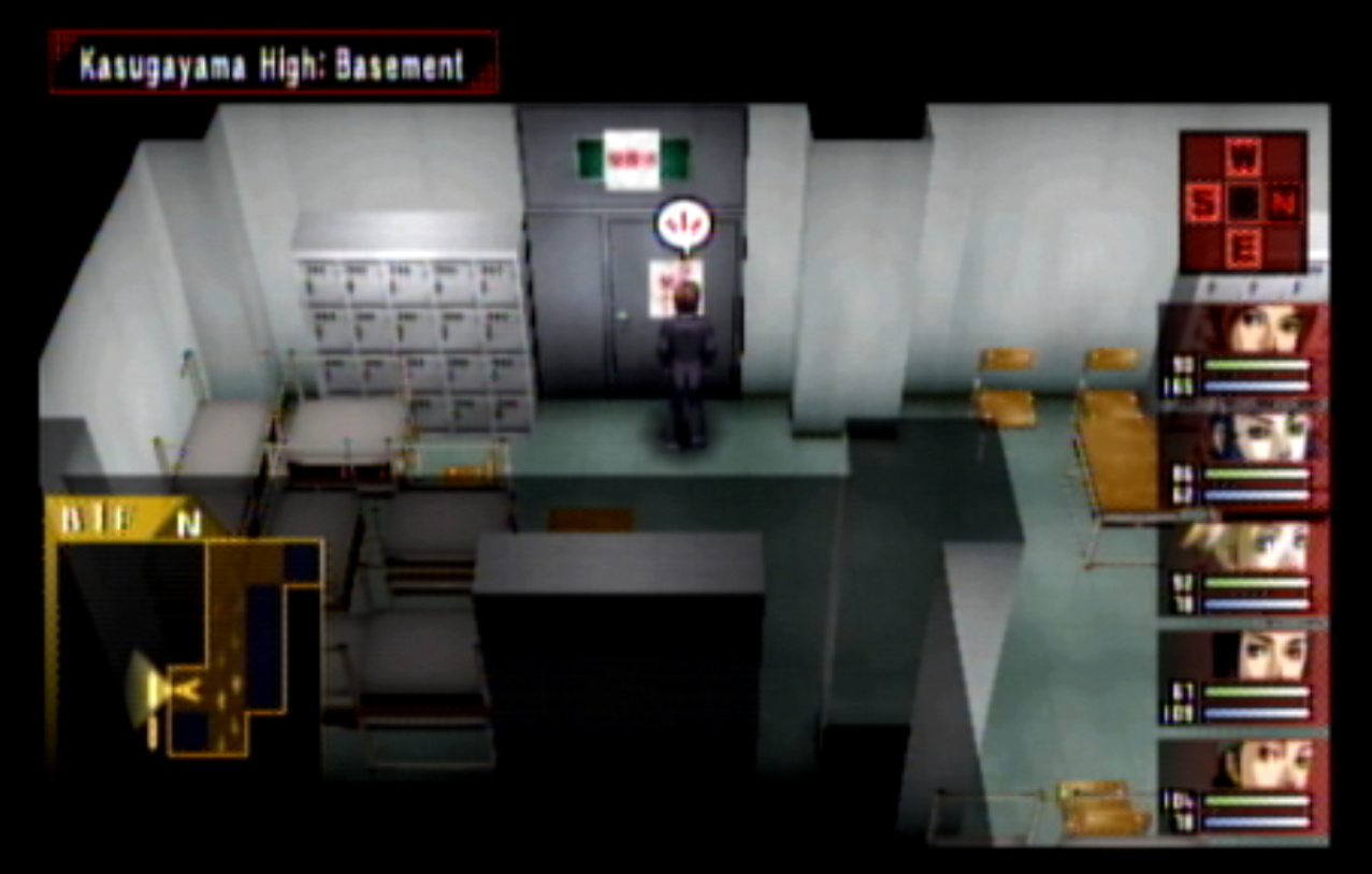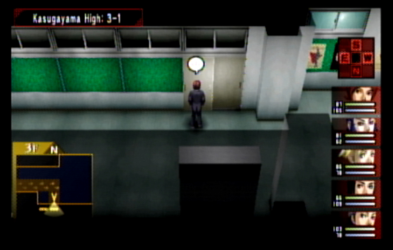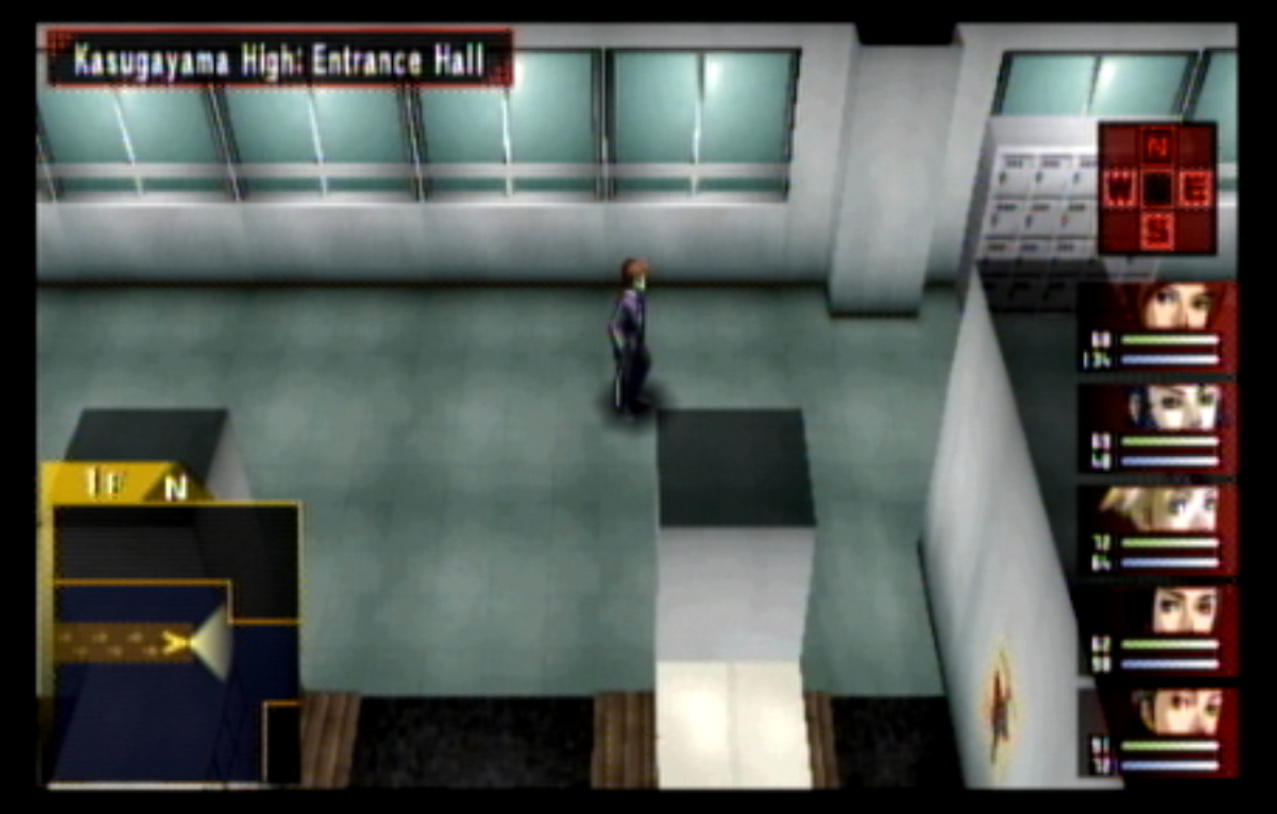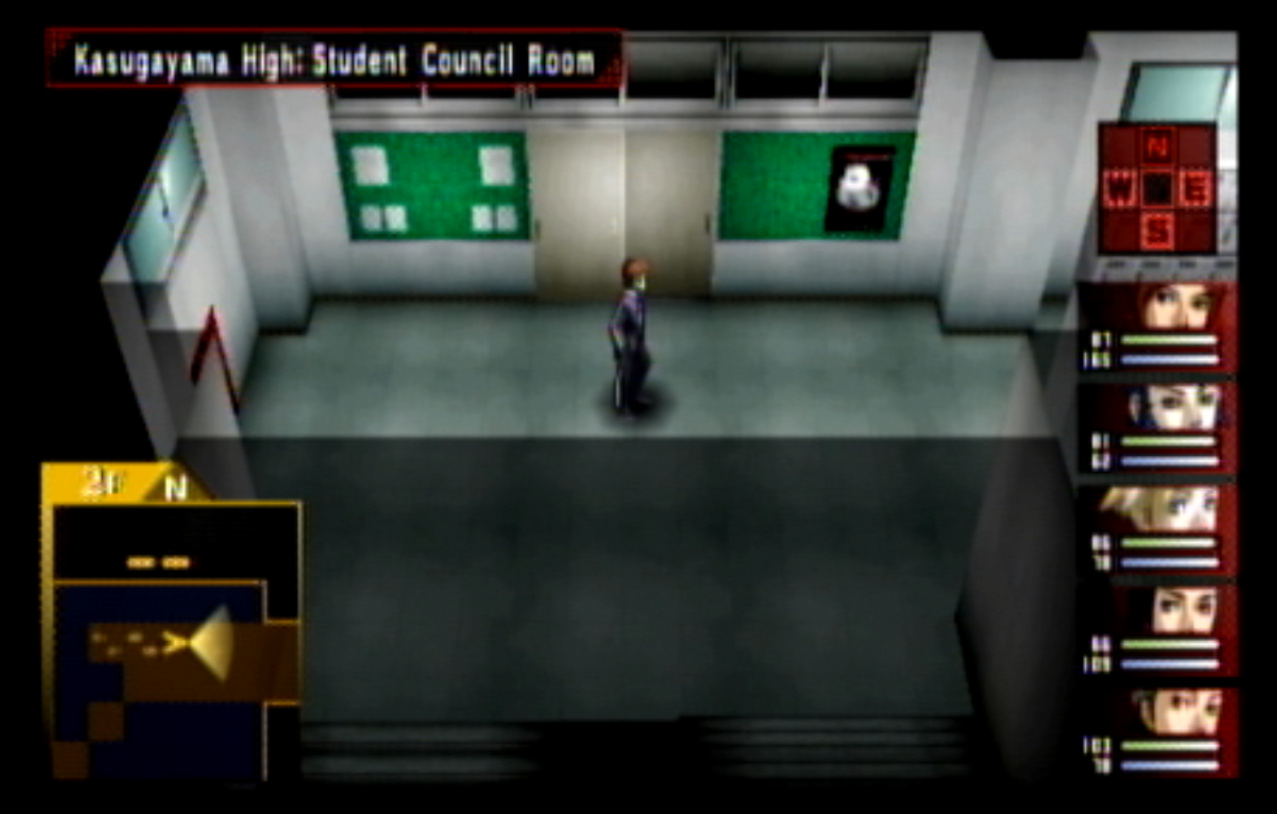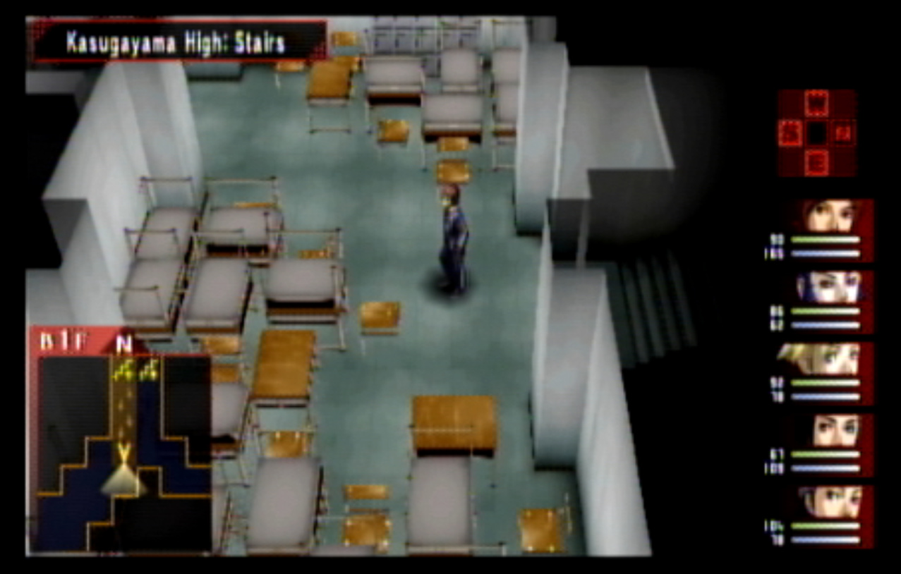 : We’re on our way to Kasugayama High, also known as Cuss High. : Cuss High is largely the same inside as Seven Sisters, with one exception that we’ll see a bit later. : Right away, we encounter two new enemies: Empusa and Agathion. The guide says that you should be making pacts with the demons around here, and it was here I finally found out what pacts do. : Unfortunately, the developers caught onto the whole “party member catchup” thing from Persona 1 and got rid of it. Eikichi is only level 6, which makes us basically unable to make a pact with anything. : So anyway, here’s what making a pact does, apart from being a bad game mechanic. When you make a pact with a demon, it doubles the number of tarot cards the demon gives on a successful negotiation. It also causes the demon to give you Free Cards. Why is this important? : The answer is that there are certain arcanas that demons do not drop cards for. To get Personas of those arcanas (Emperor is one) you need to use Free Cards. The sole exception are Fool Personas, which were a pain to get in P1 and are even more of a pain to get in P2. : Apep here is one demon the guide recommends making a pact with for Strength cards. Unfortunately, we need Eikichi to do that. : Even though Eikichi has told us where to go, we don’t want to go there just yet. Most of the rooms in Cuss High are blocked off, but 1-2 isn’t. : This gets Tatsuya another pair negotiation technique with Eikichi. I think the cutoff point for this is actually a bit after where we are. : This student gives us a hint about where we’re going next. It seems Cuss High has a bomb shelter built underneath it. I looked it up, and this actually wasn’t unheard of in the US: a bunch of schools had bomb shelters built underneath them in the 1960s, during the height of the Cold War. : Interestingly, a lot of these bomb shelters were built by civilians and to no one’s surprise a lot of them were both poorly planned and probably not all that effective against a nuclear bomb. One article I saw had a piece about a school with a population of 1300 students in the 60s. The municipality wanted to make it a fallout shelter.. that could hold a total of 340 people. How did they plan who’d get in and who wouldn’t? They uh.. didn’t. : Most of these shelters were meant to be decommissioned after the Cold War ended, but in a lot of cases that never happened and they were simply forgotten because there was no centralized recordkeeping system indicating where they all even were. There was even one under a high school in my home state of Connecticut, found in the early 90s. : Japan apparently has the same problem, only theirs are even more of a problem. For one, they’re much older (dating back to World War II) and also tend to come with the problem of unexploded WWII-era bombs. : If you walk by the rooms, you can see that some of them are decorated for the festival. Unfortunately, we can’t go into any of them. : The encounter rate is absurdly high, and we run into Puck. Puck was in Club Zodiac, but I don’t think I ever saw him. The guide recommends making a pact with him to get Lovers cards, and I did but it broke before I could get anything out of it. : You know what I’m not already tired of? Running around a building chasing after someone. Not like we’ve done this twice already. : Now we get to go all the way back to the stairs and climb back up to the third floor. : I’m pretty sure that by the time I got here, I had already put in more time than I did in Thanatos Tower in P1 because of how slow everything is. : 2-4 is just down the stairs from 3-1, so it’s not much of a walk. : Now we get to go all the way to the bomb shelter. I took a break and went to see what I could fuse at the Velvet Room. Unfortunately, everything there was either no good or would break the ability to use Mega Blaze. I could’ve replaced the Pixie we made with a Harpy, but there wasn’t much of a point. : The stairs to the basement are right near the gym on the west side of the school. : It’s kind of strange to me that the school has such a small basement. I know the one in Connecticut was only part of the basement and not the entire thing.