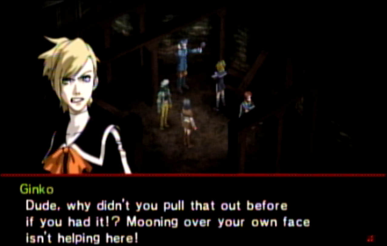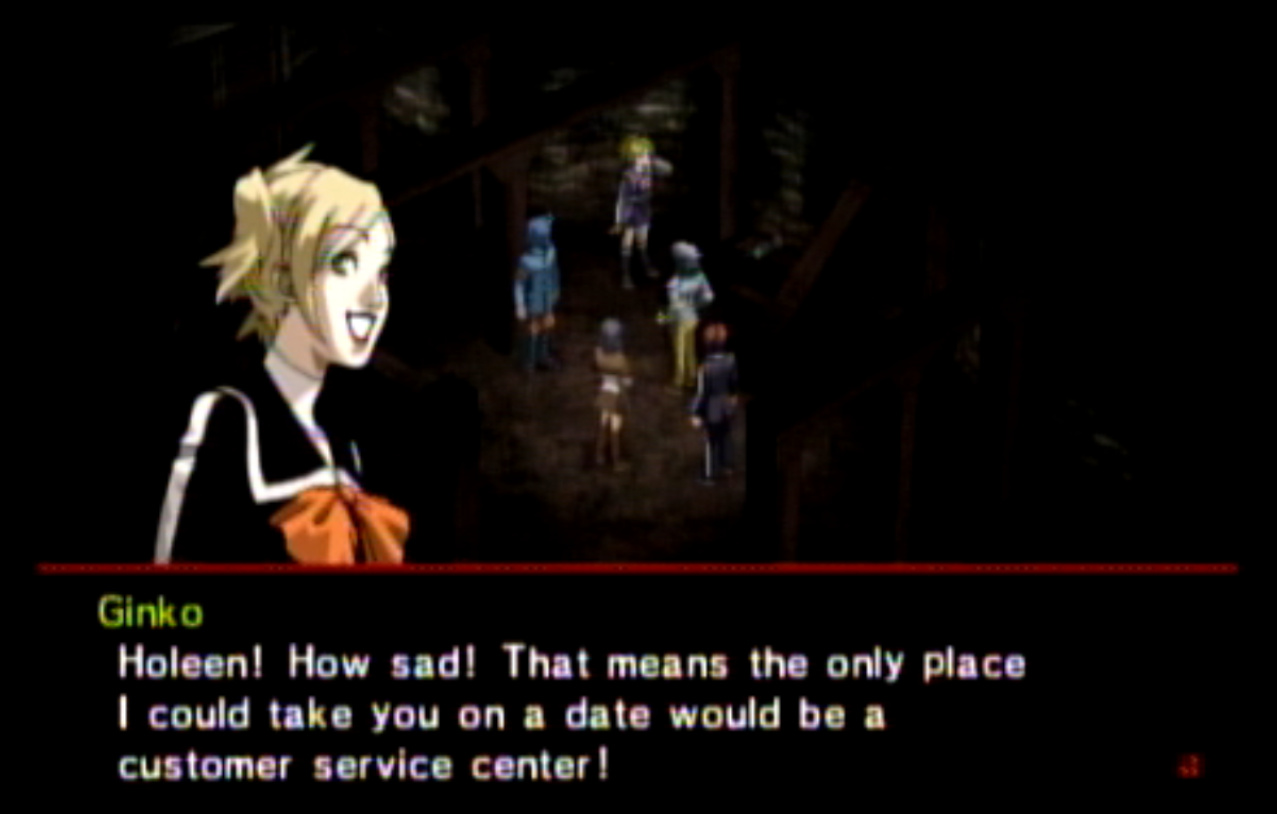 Yeah, I went and looked it up and edited the post. It’s actually a play on her last name, because “gin” is the Japanese word for silver. It’s also a reference to Devil Summoner, which must’ve been awkward for the localizers because Devil Summoner was never translated and Soul Hackers wouldn’t be for several years after the PSP version of Innocent Sin.