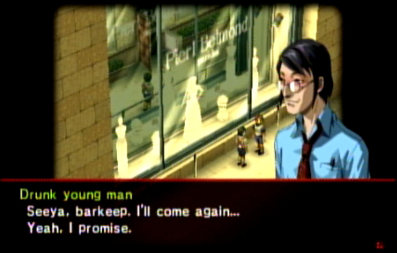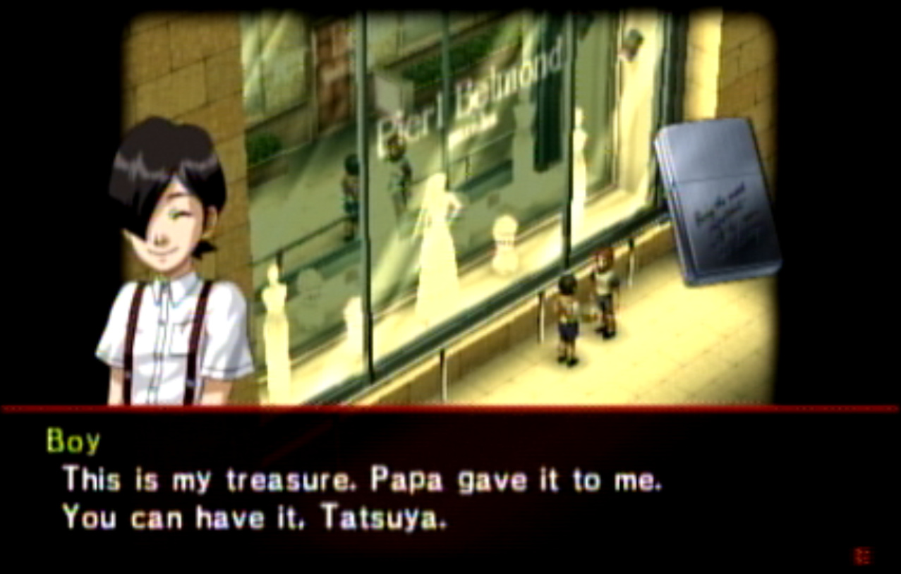 : It looks like the votes were overwhelmingly to kill Hanya off, so I’ll go with that. Interestingly, I found a translated interview with the Persona 1 devteam about where they got the inspiration for their characters. You can read it here. : There’s a lot to take away from it. Pretty much the entire playable P1 cast is based off either idols or actors, with Hanya apparently being modeled after someone one of the developers knew. Maki was apparently based off a JAV star, which explains a lot about why she’s so godawful. : The interview also kind of explains why the P1 characters look so different in P2: it’s because they were made to look more like the actors they were modeled after. : There actually is a Peace Diner in Renegdai (where Seven Sisters is) but the one we’re looking for is in Yumezaki. : I know I accidentally missed a sidequest, but there’s another one we can (but shouldn’t) do right now. If we talk to the lucky cat in the Kuzunoha Agency.. : It’ll ask us for 100 yen. Apologies for the different aspect ratio, I’ve been using my capture card to play Animal Crossing and forgot to switch the settings, it’ll be fixed momentarily. : After talking to it 100 times (thus donating a total of 10,000 yen) the cat will give you an Incense Set, containing one of every stat-boosting incense. It’s probably not worth it, because there’s much better ways to spend money. : You know what, speaking of Animal Crossing, let’s just turn this into an Animal Crossing LP. It sure is a wonderful day on the island. Roses in bloom everywhere because they won’t stop breeding, the works. Let’s go relax in my house after like 15 minutes of mashing X in front of that cat. : I love my plant room. So relaxing. Wait a second.. what’s that noise coming from the side room? : GOD DAMMIT! Fucking cat! Fine, I’ll give you the bells, just fuck off! : Now, where were we? Oh, right. Somebody spread a rumor that I know how to manipulate turnip RNG, and then my upstairs just kind of became like this overnight. I don’t really mind it, but.. is that the goddamn cat again? : One incense!? I gave you 100,000 bells! There aren’t even stats in Animal Crossing! : You want 10 Nook tickets? That’s fucking highway robbery! Fuck it, can’t even relax in Animal Crossing, back to Persona 2. : Yumezaki has a bunch of places we can’t visit yet. Peace Diner is in the Yumezaki Center mall. Remember malls? : Maya also loves her some pachinko. : Tony’s Shop, from the company that brought you Tony’s Arms 9mm ammo in Resident Evil 2. I hated that they got rid of that in the remake. : Honestly, when this character first came in, before the dialog pop-up I thought it was Hanakouji having become thin again due to Eikichi spreading rumors. It would’ve been amusing.