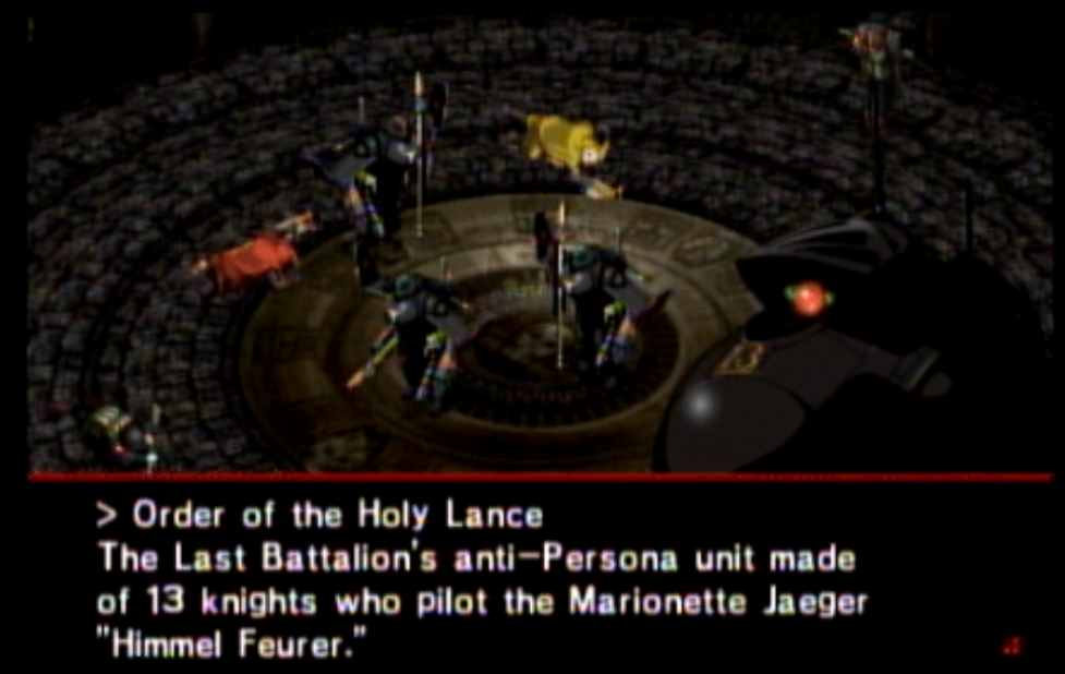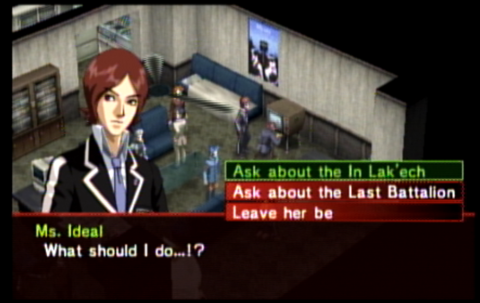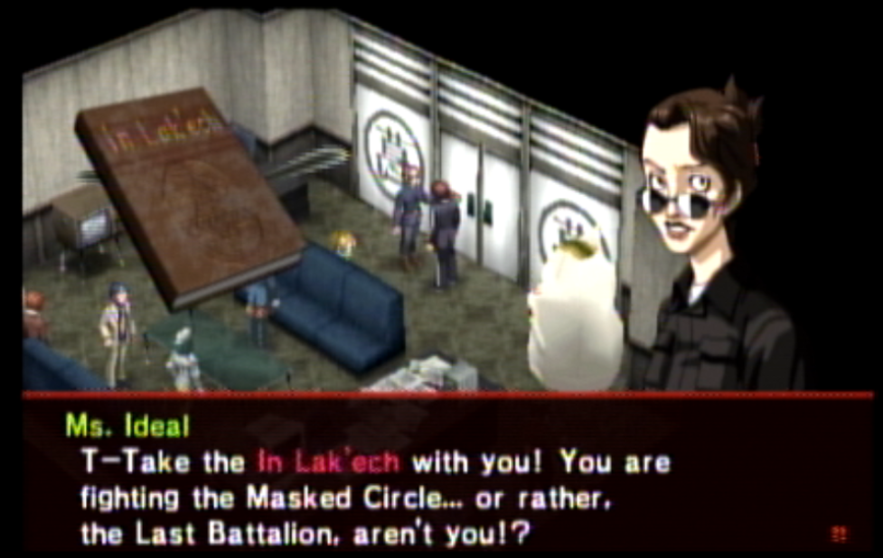 : This entire dungeon is going to have a plot very reminiscent of Final Fantasy 8. Persona 2 came out a few months after FF8, so it’s unlikely that Atlus had outright stolen the plot, but.. yeah. Given a choice between FF8 and Innocent Sin, I can see why a lot of people picked FF8.