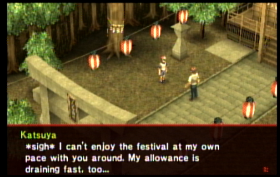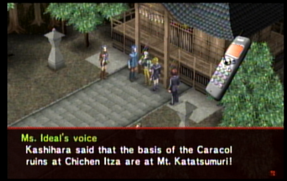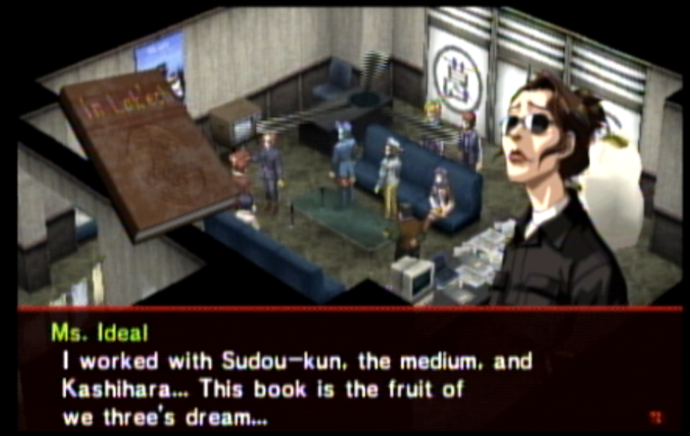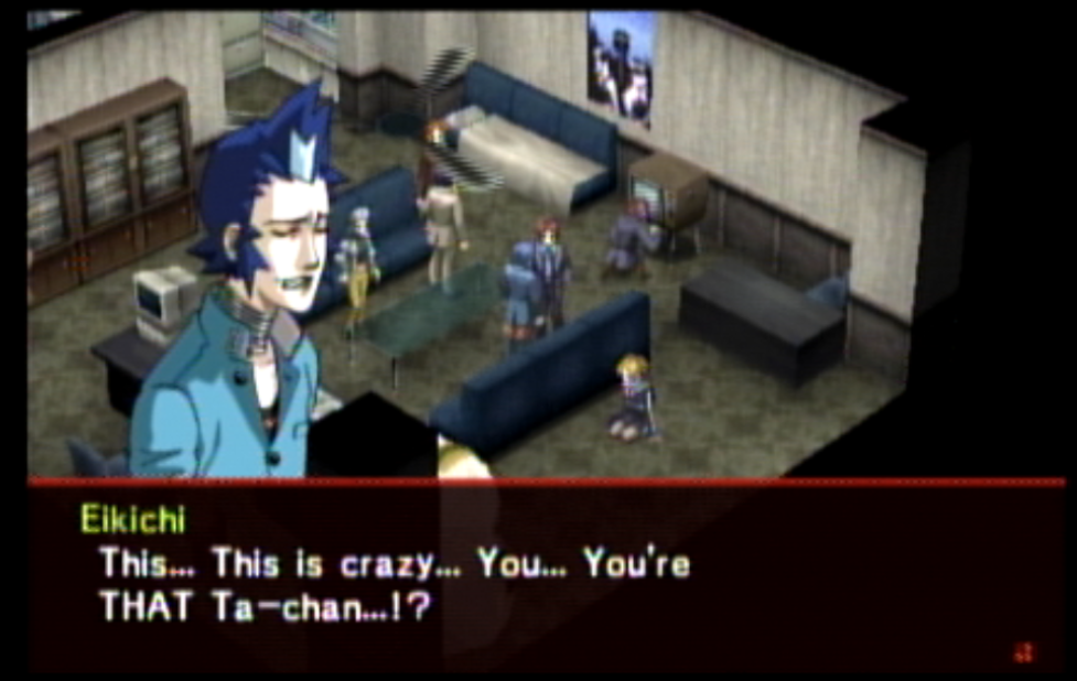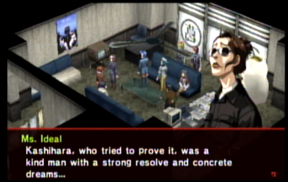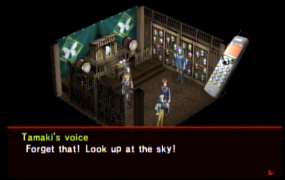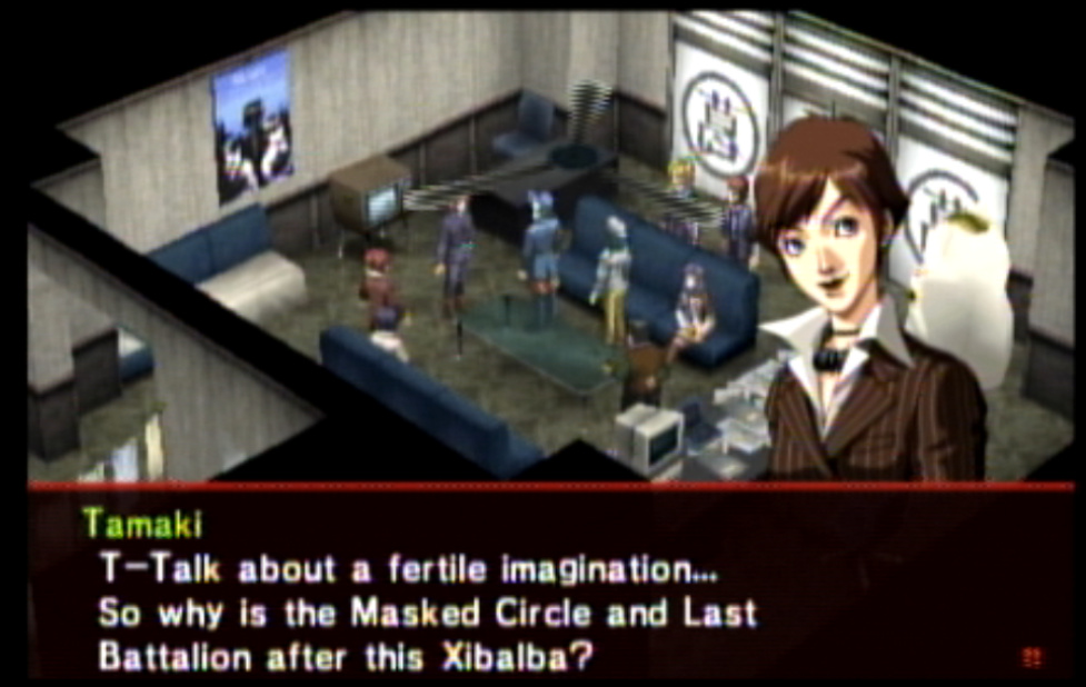 : This is a retcon of Persona 1. In Persona 1, it’s established that the only reason the Persona Game works is because of the DEVA System interfacing with Maki and overwriting reality with her dream world. Theoretically, once the DEVA system blew up at the end of Persona 1, that should’ve been the end of it. Nevermind that this scene is happening in 1989 and the DEVA System wasn’t built until 1996.