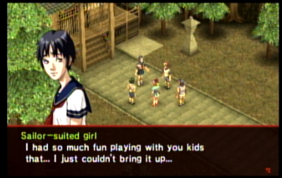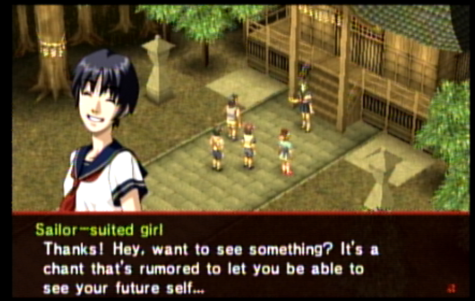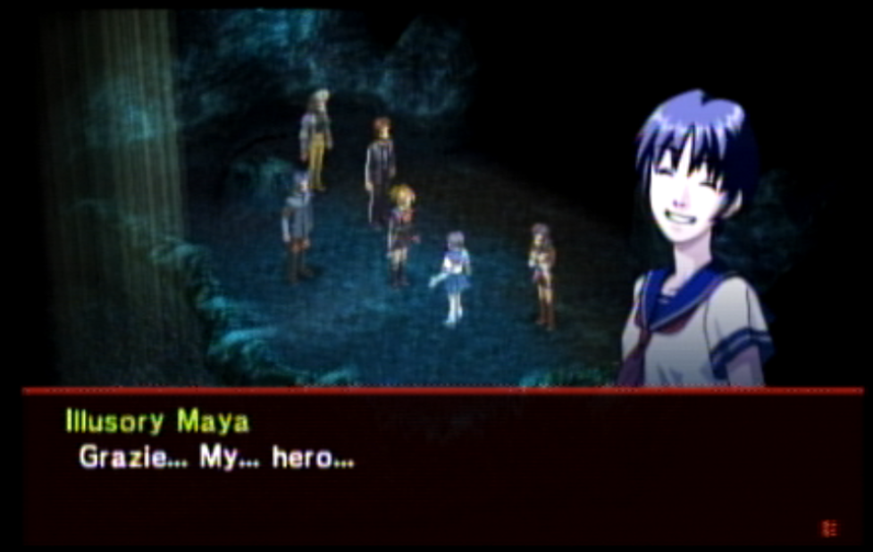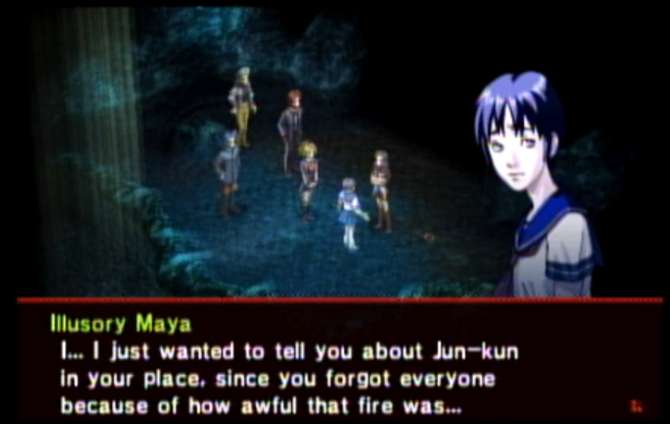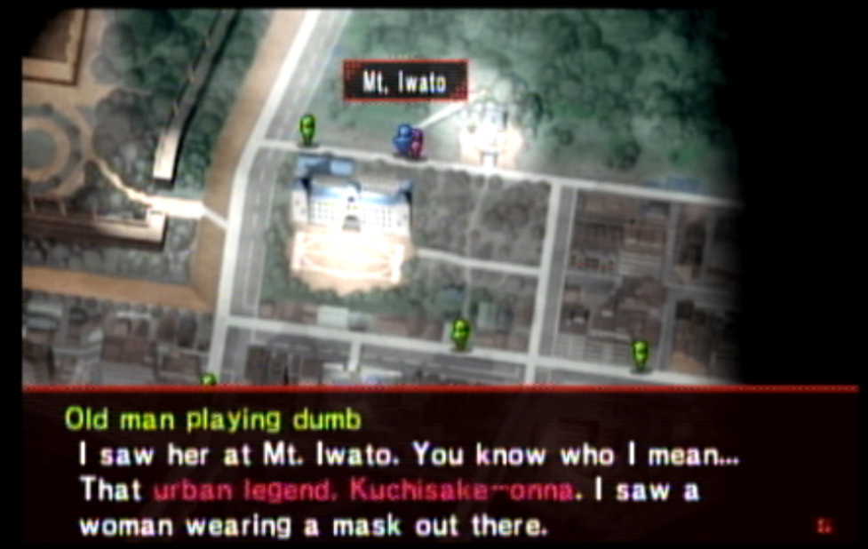 : Now that we’ve listened to Maya Okamura spout off her crazy bullshit, we get what is basically a plot dump disguised as a dungeon. I spread the Kuchisake-onna rumor off screen.