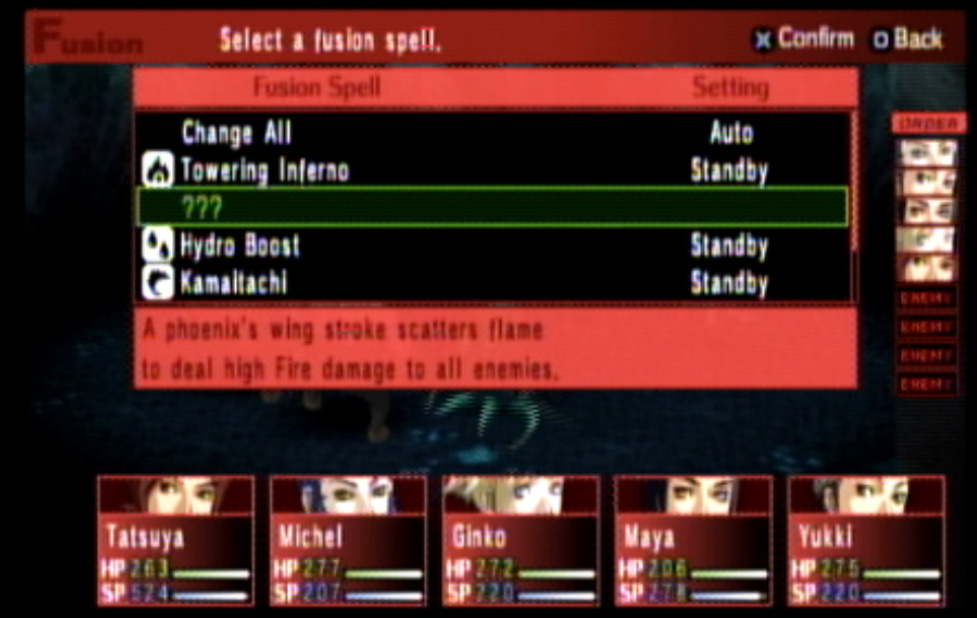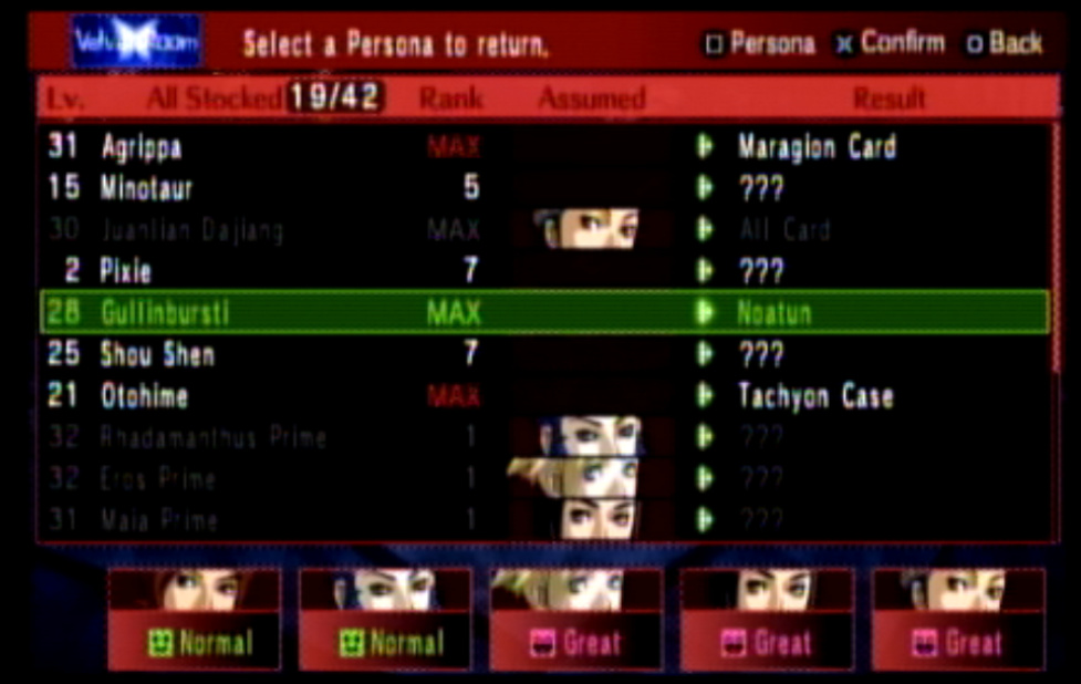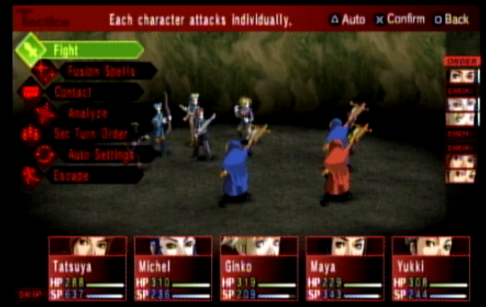 : It’s entirely possible that unless you’re using a map, you could miss one or more of the masks. The worst part is that unlike Persona 1 where the ultimate Personas were all kinda garbage (except Elly’s), the ones in Innocent Sin have a unique fusion spell in addition to multiple top-tier damage spells. The fusion spell requires all five ultimates.
