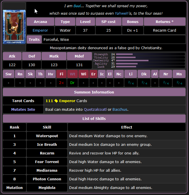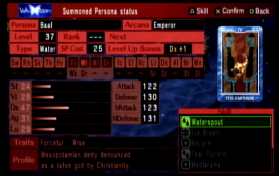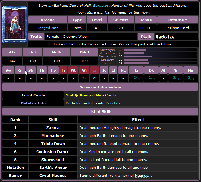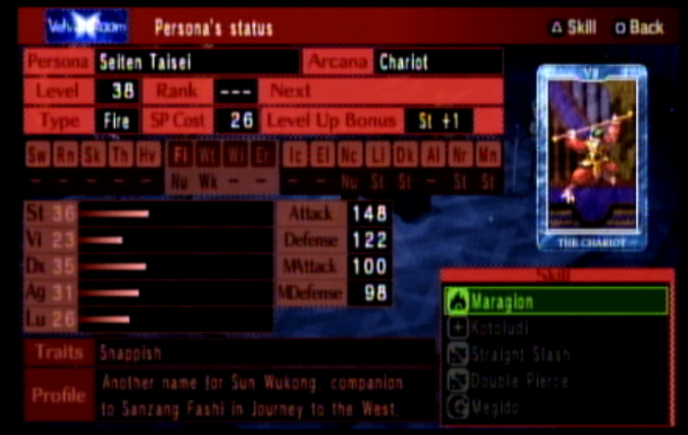 : This guy is.. I actually don’t know. The game refers to him as “Demon King” and I think he’s supposed to be some kind of ancient Chinese or Japanese general. He’s really nothing special except that he has gravity-based spells. I don’t think we’ve seen a single Persona with a gravity spell yet.
