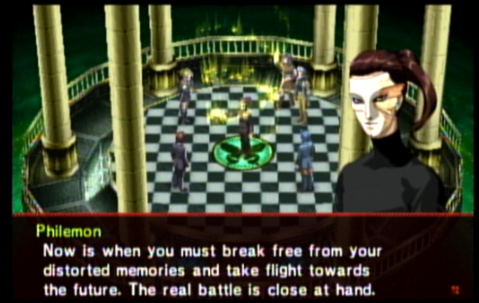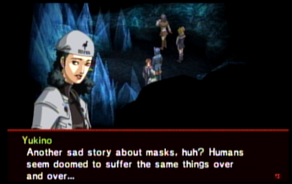 : So, remember in Persona 1 how you got the “ultimate” Personas by picking the moral choices correctly, and you got the totem items at the end of the game? The masks here ARE those totem items. If you miss one, there’s no coming back for it and you are permanently screwed out of each character’s ultimate Persona. Yes, they’re just sitting in a random-ass midgame dungeon.