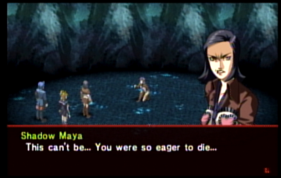 : To make things worse, Shadow Maya has a move called Diamond Dust, which is basically Mabufula with a higher freeze chance. She also has a poison attack.