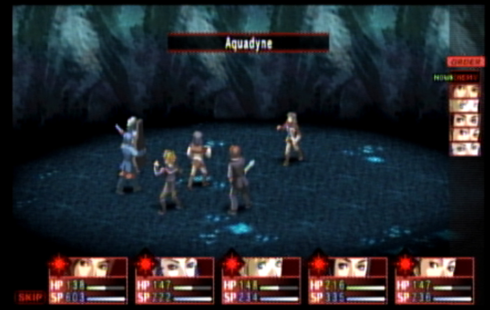 : Our party starts at half health. Shadow Maya opens with Aquadyne, which two of our five party members null.