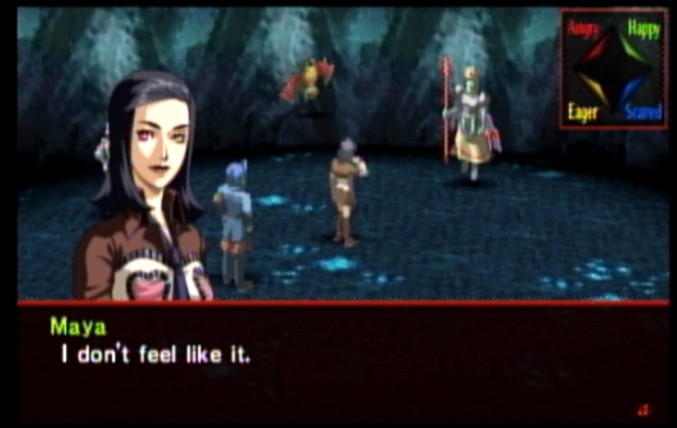 : This was optional dialogue, but I’m going to cast aside the mask of my conscience and not mark it because it’s the first real instance where something’s clearly wrong with Maya.. assuming you haven’t played Persona 4 or 5.