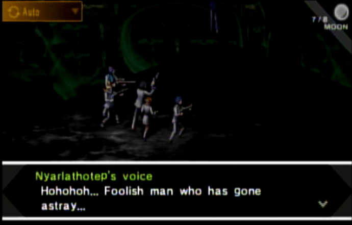 : Persona 2 also retcons this. Now, Nyarlathotep is a major villain and also the one pulling Jun’s strings. He apparently exists as an SMT demon in the Persona universe, the same way that Nyx did in Snow Queen.