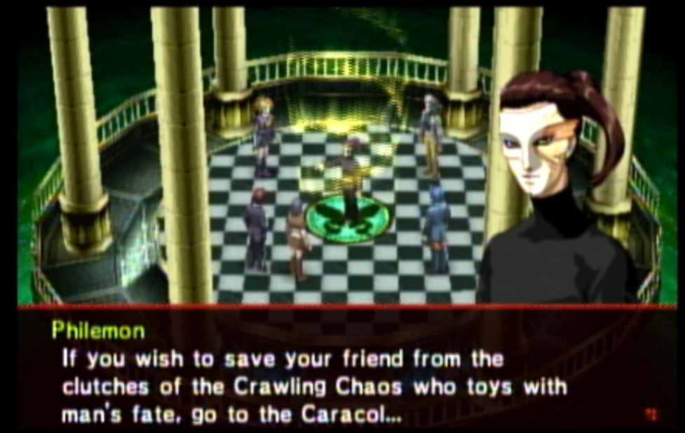 : If you’ve ever read Lovecraft, you know who the Crawling Chaos is. If not, you might’ve seen him in the Persona 1 LP under his proper name: Nyarlathotep.