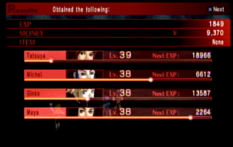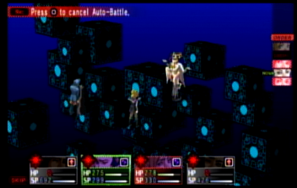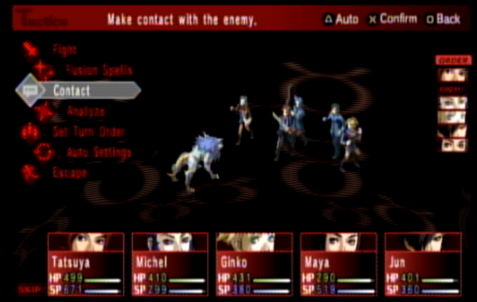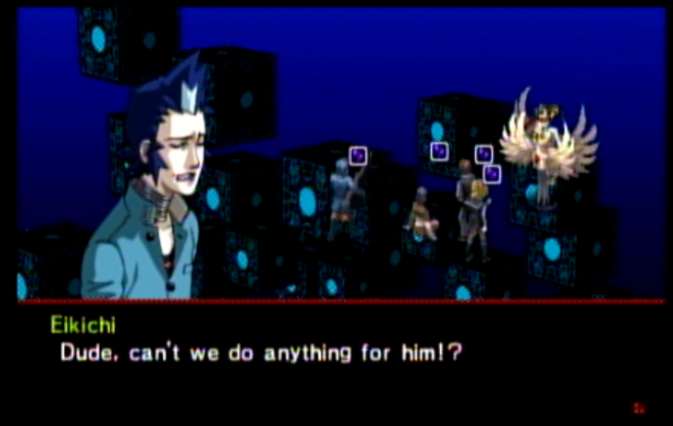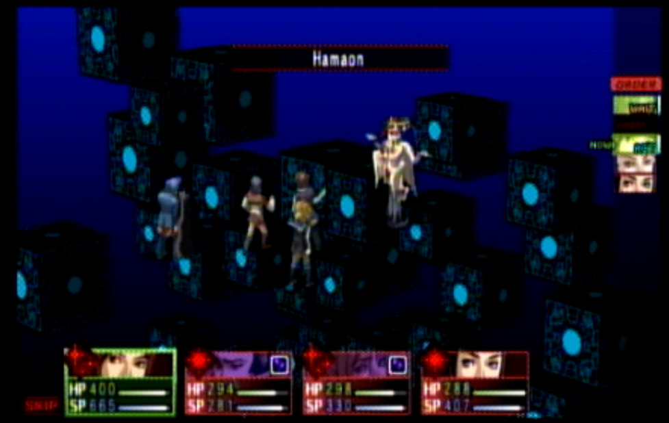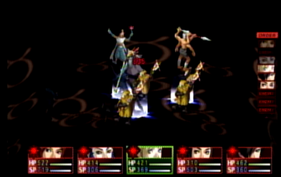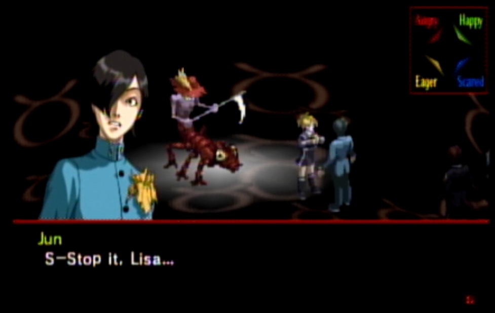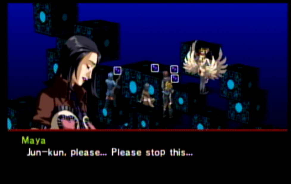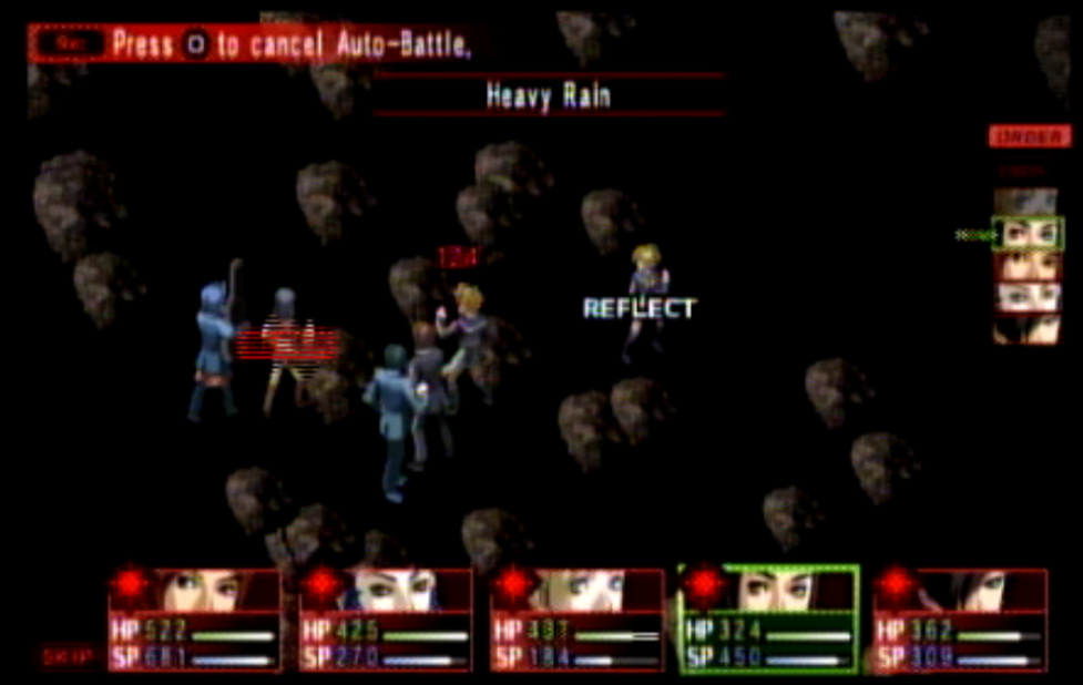: I got into a very nasty situation where both Tatsuya and Lisa had their Persona sealed and Jun was confused. I believe on the next turn, Eikichi got shocked and Maya got frozen to boot. Jun nearly died and I had to use a couple of rattle drinks to keep the party up.