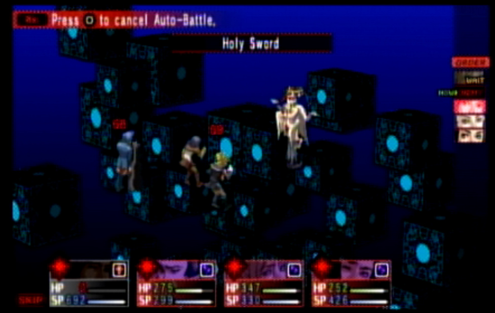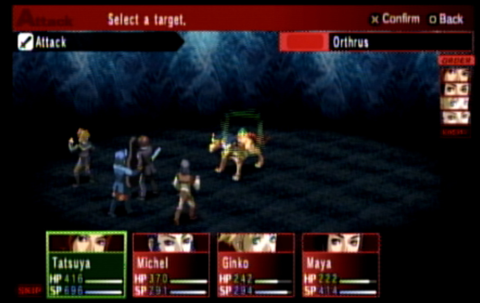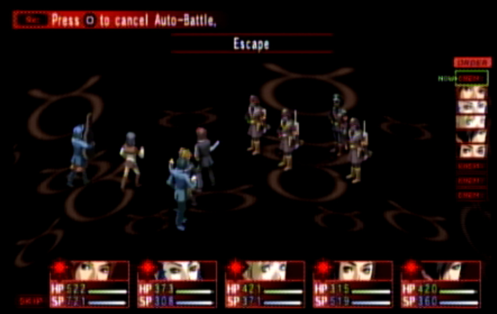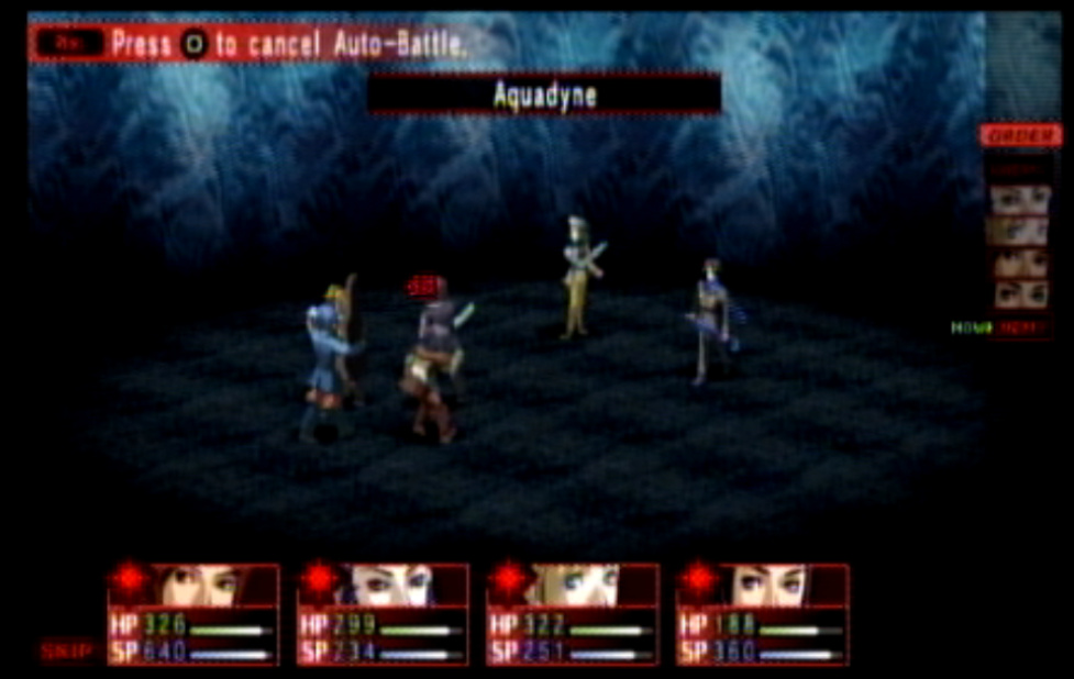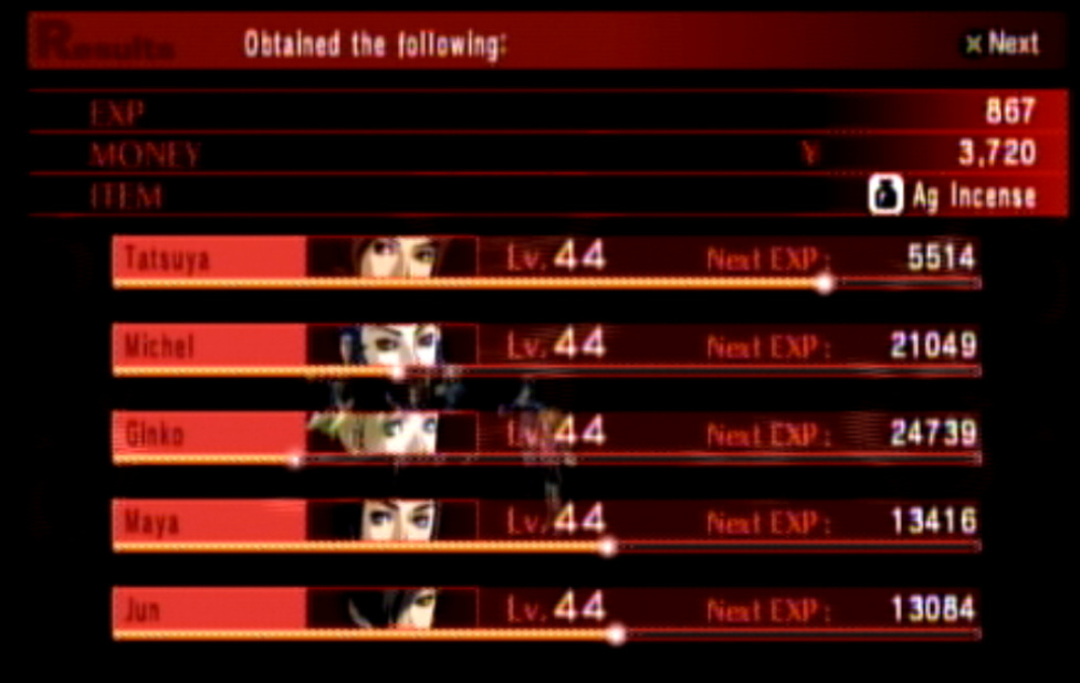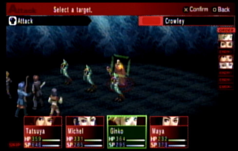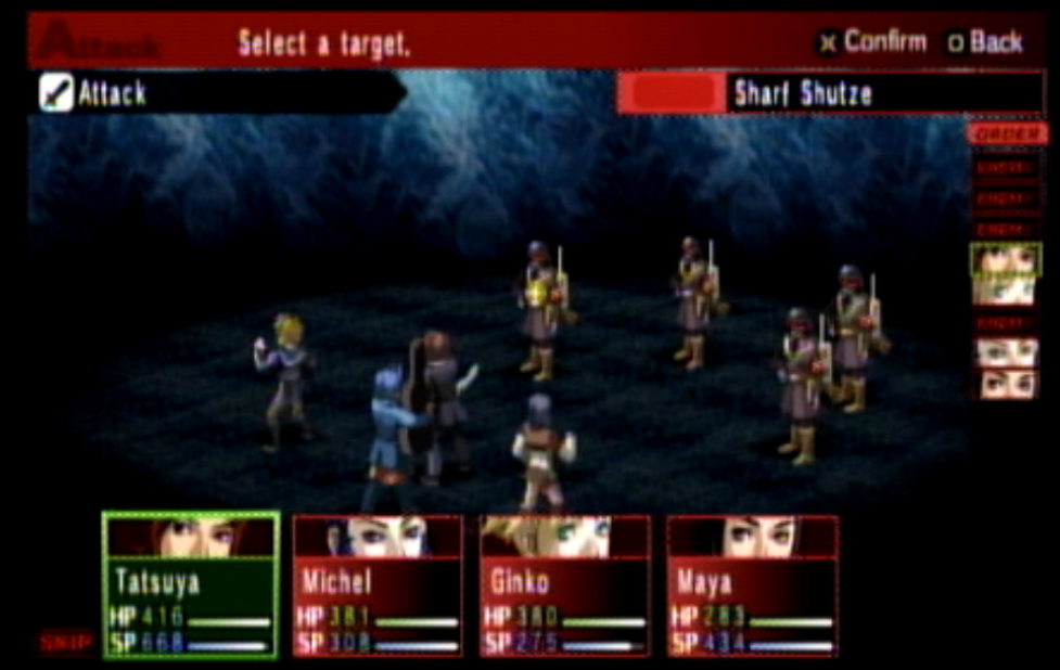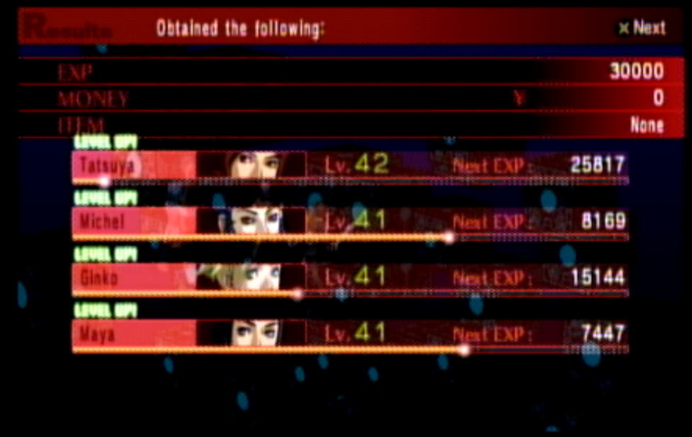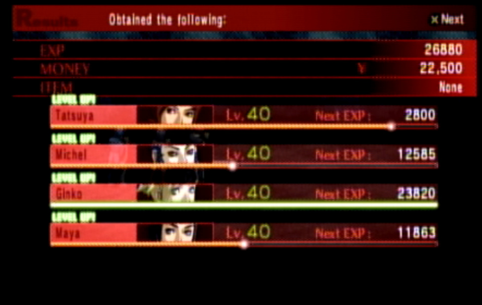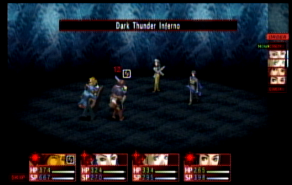: I got into a very nasty situation where both Tatsuya and Lisa had their Persona sealed and Jun was confused. I believe on the next turn, Eikichi got shocked and Maya got frozen to boot. Jun nearly died and I had to use a couple of rattle drinks to keep the party up.