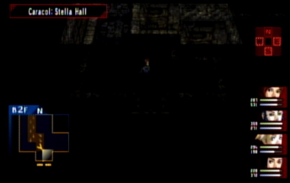 : B3F introduces a new enemy, Virulenz Kraft. They’re little mad doctor type Nazis who are one of the most annoying goddamn things to fight. They have very high magic defense and like to cast Zanma to do a load of damage to the entire party at once. At one point I wound up fighting four of them at once and it sucked.