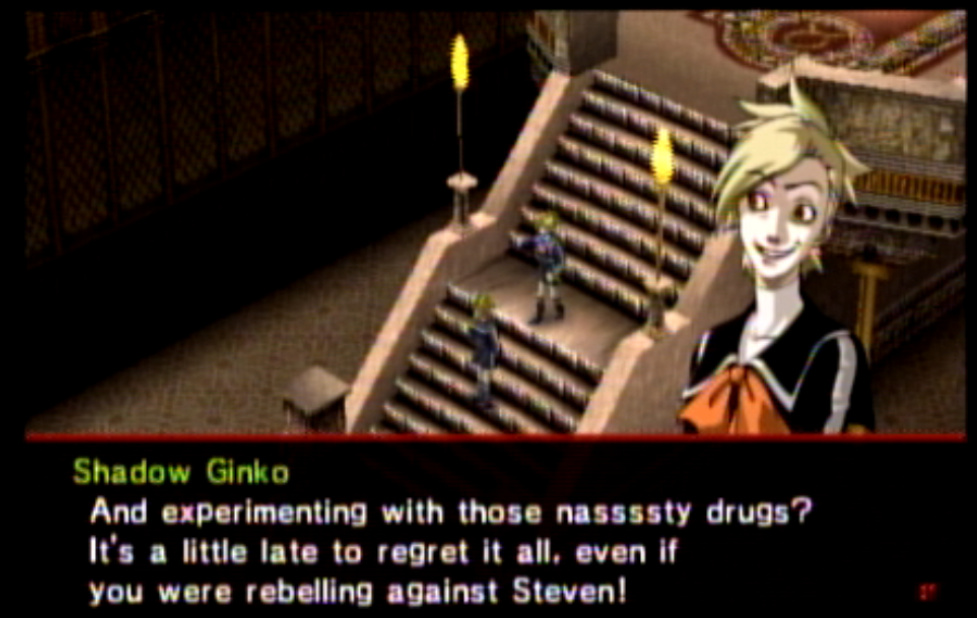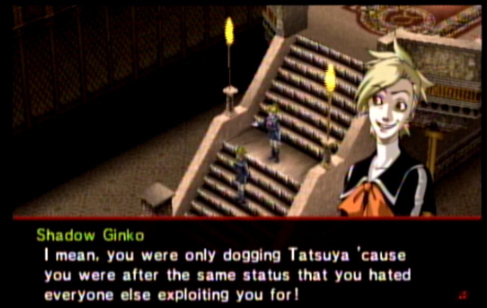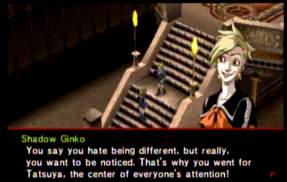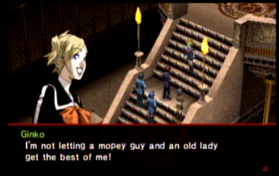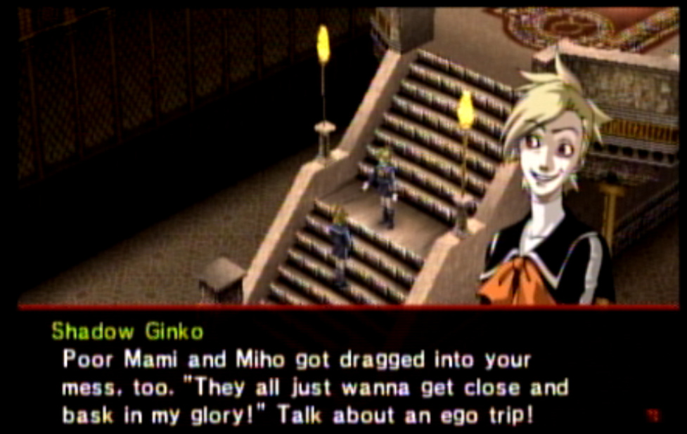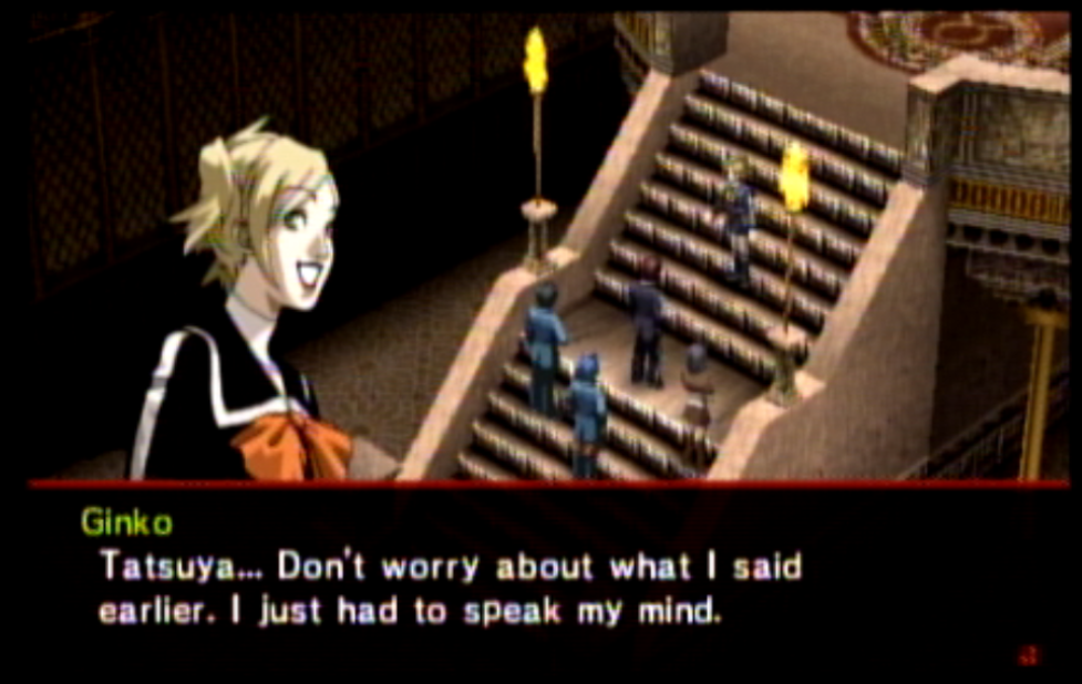 : Before I played this game, I had read that Persona 2 has the strongest writing of all the games. Maybe that’s Eternal Punishment more than Innocent Sin, because mind control villains are honestly just a sign of bad writing.